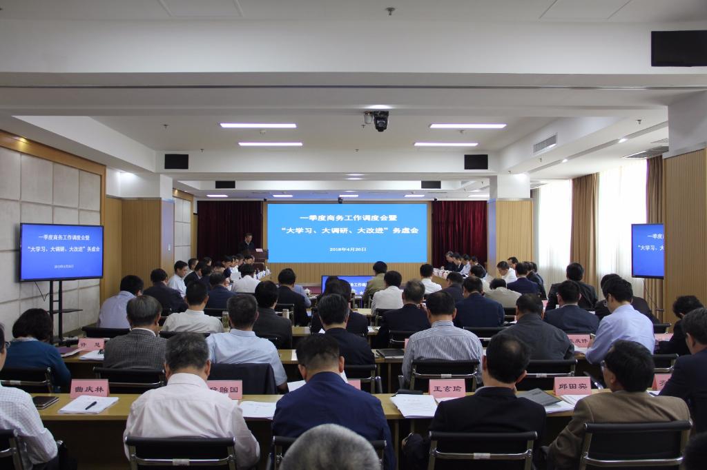4月26日下午,山东省商务厅一季度商务工作调度会暨“大学习、大调研、大改进”务虚会在济南召开。厅领导班子成员,各市商务主管单位、厅机关各处室、驻外代表处和直属单位主要负责人近70人参加会议。院长刁建东作为直属单位负责人参加了会议。