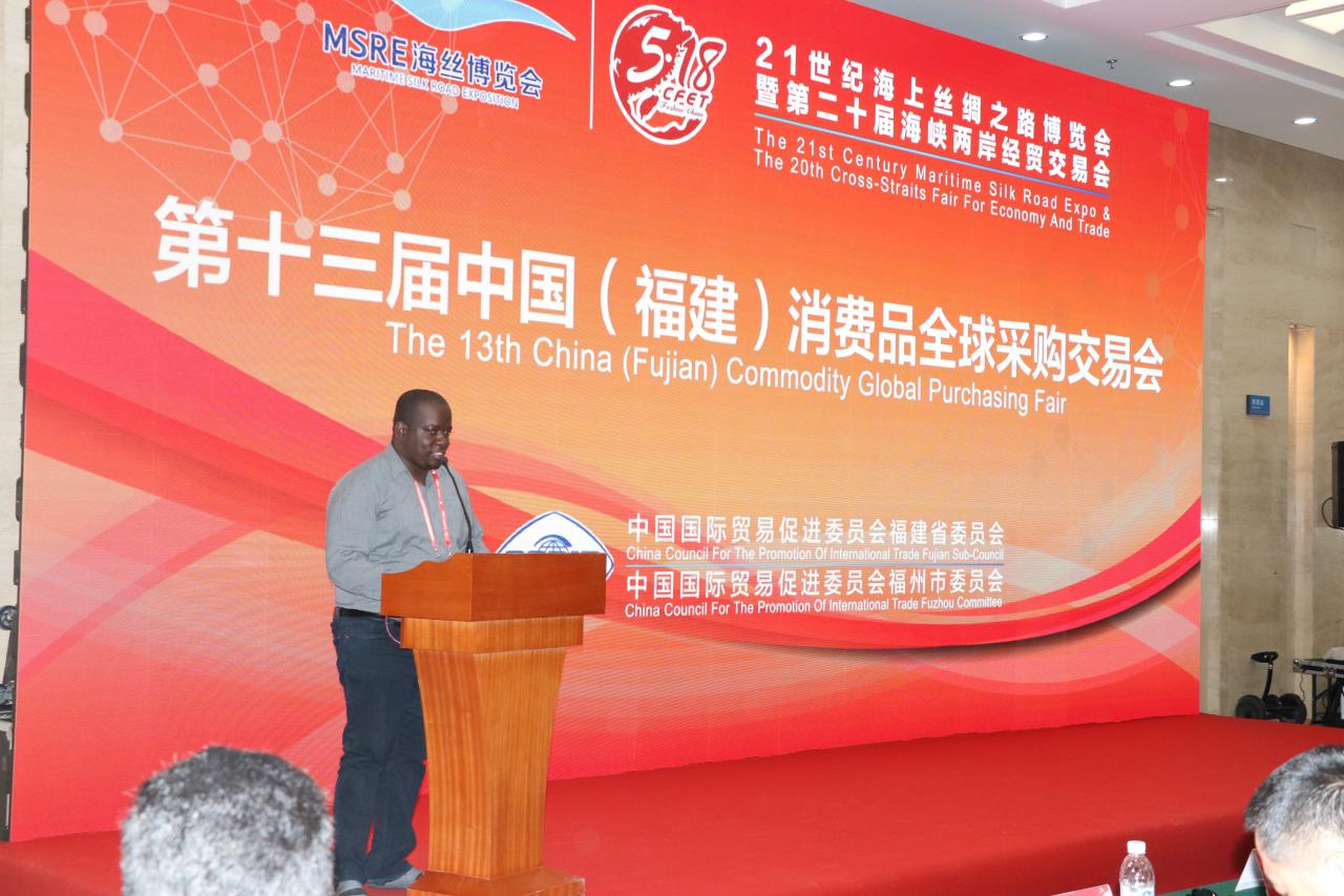 5月18日,21世纪海上丝绸之路博览会暨第二十届海峡两岸经贸交易会在福州举办,来自国(境)内外近600家企业参加展会。伟德2018年产业集群发展规划部级研讨班官员与肯尼亚经济贸易和产权保护研修班学员参加交易相关活动。来自秘鲁的官员詹森·埃雷迪亚·巴卡(Jensen Ausberto Heredia Baca)和来自肯尼亚的迪斯玛·波勒·姆瓦桑布(Dismas Polle Mwasambu)作为采购商代表分别在交易会上发言。