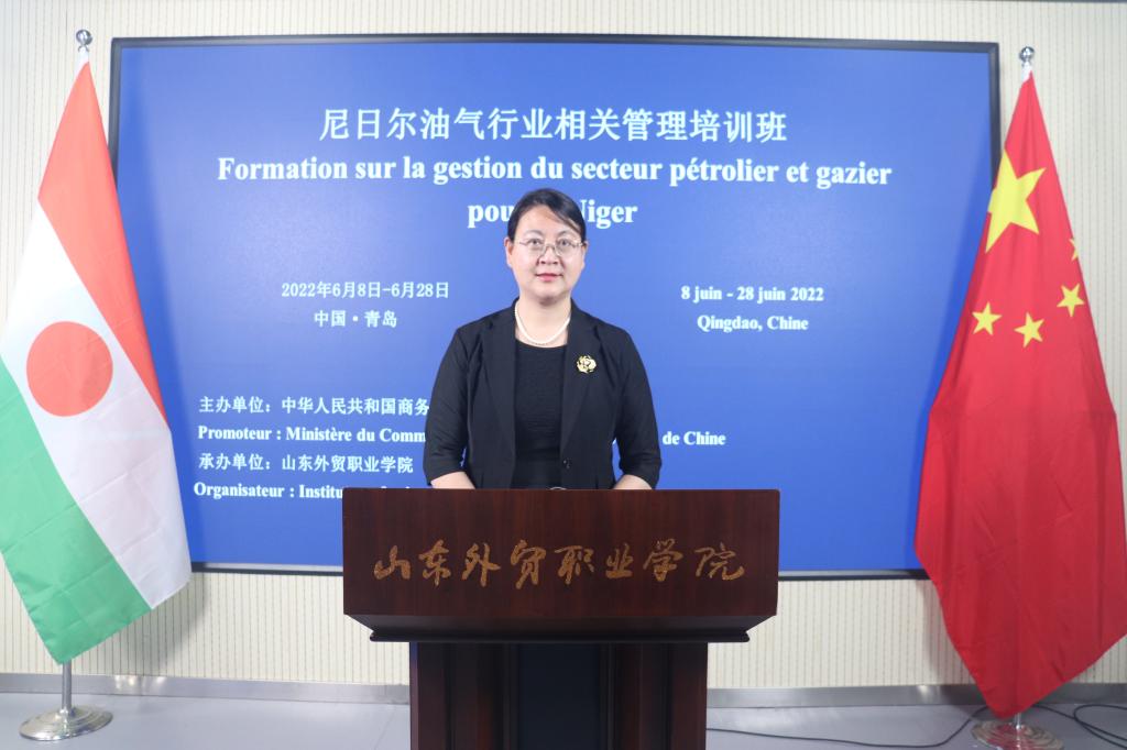 刘珉在致辞中概述了山东省油气行业的发展情况,并对学院的办学历史、校友资源、援外培训情况及本期培训班的安排进行了介绍。她表示,学院将充分利用国内高校的师资和平台资源,与学员分享中国在油气行业的管理经验,为我省与尼日尔在教育、经贸、能源等领域的合作搭建平台。