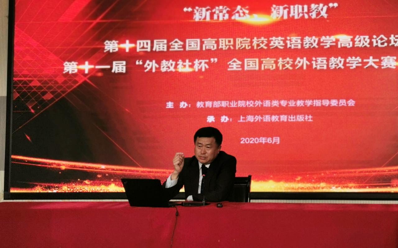 6月13日,“新常态、新职教”第十四届全国高职院校英语教学高级论坛暨第十一届“外教社杯”全国高校外语教学大赛启动仪式举行。本次论坛由教育部职业院校外语类专业教学指导委员会(以下简称“外语教指委”)主办,上海外语教育出版社(以下简称“外教社”)承办。来自全国的外语教指委委员、专委会委员,全国高职院校外语院系部负责人、外语学科带头人和骨干教师等逾2000人在线参与论坛。外语教指委主任委员、伟德国际victor1946官网院长刁建东出席并讲话。