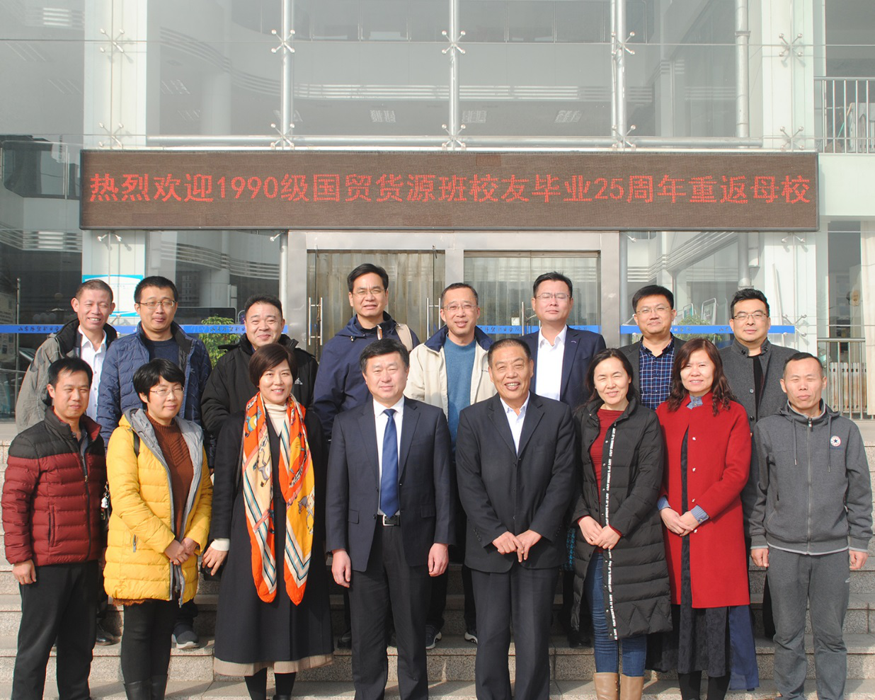 11月17日,伟德90级国贸货源班校友毕业25周年重聚母校,在北校区举行了庆祝活动。院长刁建东、校友办公室主任陈延宁、招生办公室赵相彬参加了庆祝活动。
