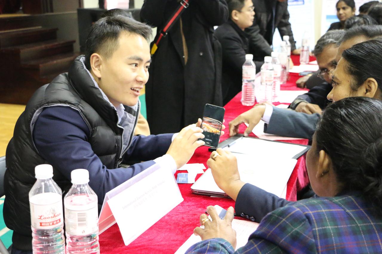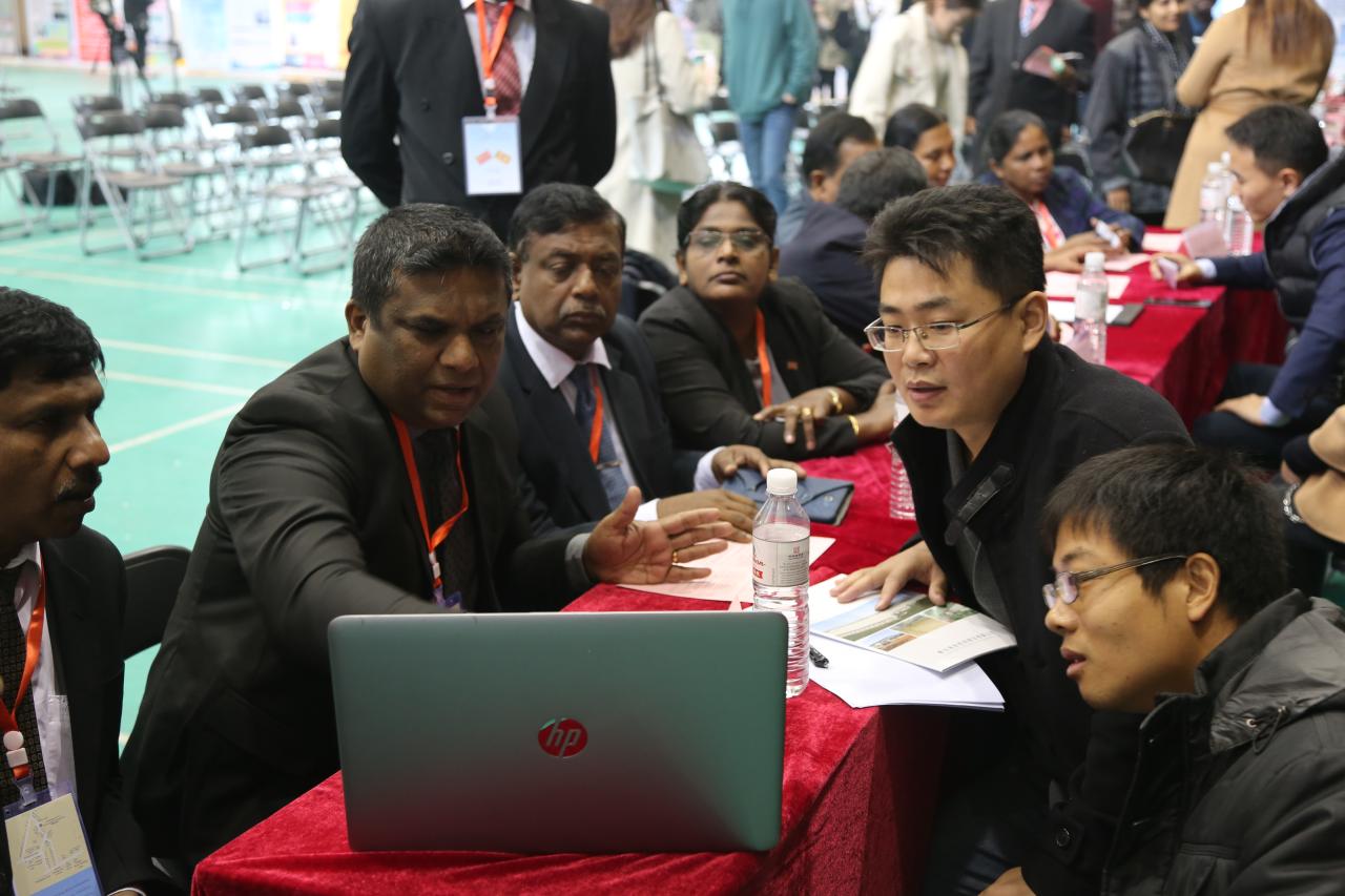 与会校友企业代表还与斯里兰卡公私合营制应用与发展研修班成员就开展贸易合作进行交流洽谈。