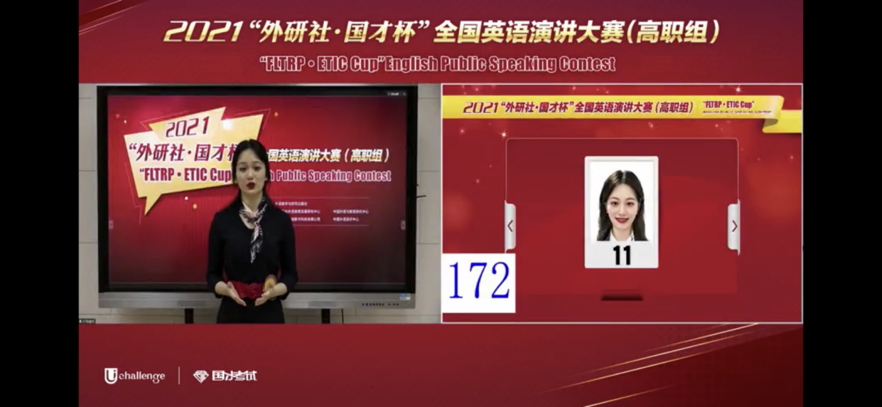 12月14日,2021“外研社·国才杯”全国英语演讲大赛(高职组)决赛在线举行,伟德20级空乘4班学生李泽青以全国第一名的优异成绩获得国赛一等奖。