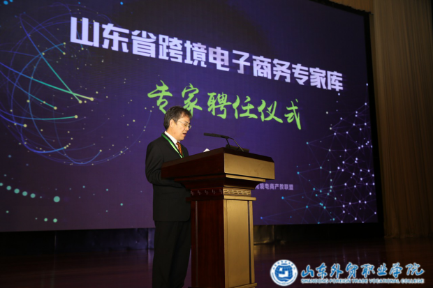 其中,跨境电商人才分论坛由山东省商务厅和山东省教育厅指导。论坛上,山东省商务厅副厅长任海涛、山东省教育厅职教处调研员吕序峰分别致辞,烟台联宇网络科技有限公司总经理张海政代表山东省跨境电商专家库入选专家发言。学院副院长周厚才主持论坛。在山东省跨境电商专家库入选专家聘任仪式、齐鲁跨境电商云学堂启动仪式后,刁建东作了跨境电商人才培养的“山东模式”主题演讲,他从山东省跨境电商人才供需矛盾状况、跨境电商人才培养的“山东模式”及其成效、跨境电商人才培养工作打算三方面对跨境电商人才培养的“山东模式”进行了详细解读。亚马逊华北区招商总监李昭华、eBay大中华区招商总监潘喆虎、青岛大学国际经济与贸易系主任张锡宝、Wish华东区商务拓展经理邓超分别做亚马逊“全球开店”山东卖家培养计划、eBay人才培养计划、青岛大学在跨境电商人才培养方面的尝试、Wish星孵化、星机遇的演讲。