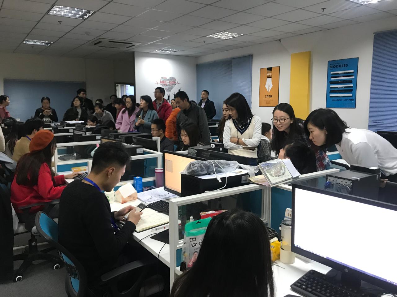 学员参观考察了青岛跨境电商孵化基地,了解孵化基地学生在eBay和亚马逊等平台上的实际运营情况,与基地有关人员就人才培养、项目孵化等方面进行了深入交流。