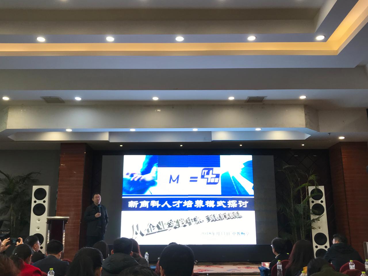 副院长周厚才出席仪式并致辞,中教畅享(北京)科技有限公司总经理黄学全做了“新商科人才培养方案探讨”主题报告,中教畅享和孵化基地的讲师们分享了跨境电商推广、进出口实务和跨境电商平台等模块的实际操作经验。
