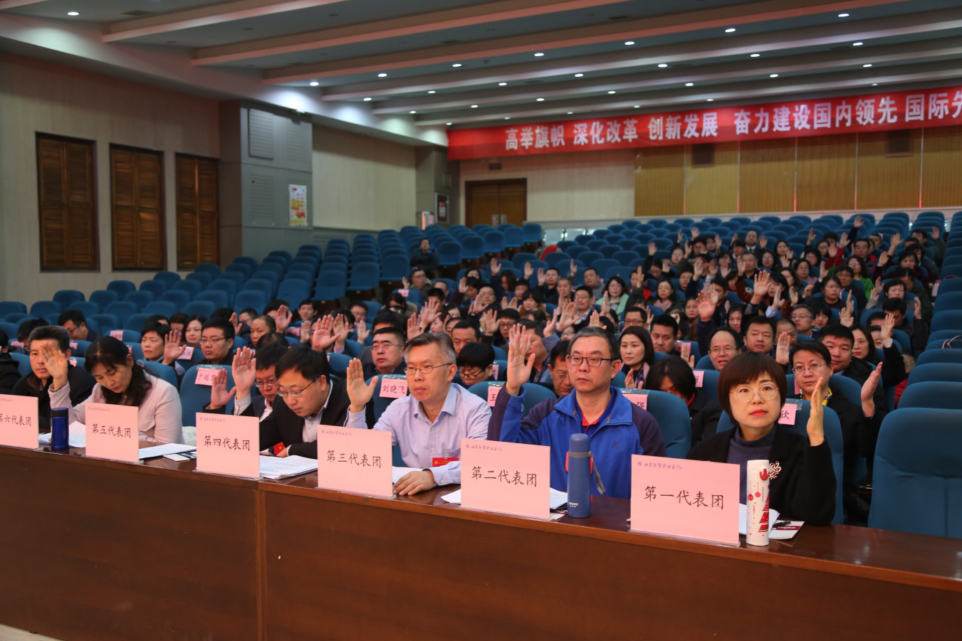 经与会代表表决,大会通过了《院长工作报告》、《工会工作报告》、《伟德国际victor1946官网人才公寓租赁办法、租赁协议书、管理办法》、《伟德国际victor1946官网竞聘上岗实施方案》、《大会决议》。
