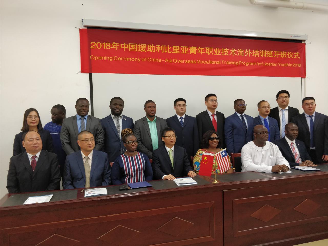 当地时间11月5日上午,由商务部主办、伟德承办的第九期2018年中国援助利比里亚青年职业技术海外培训班开班仪式在利比里亚首都蒙罗维亚职业培训中心举行。开班仪式由蒙罗维亚职业培训中心主任主持,利比里亚副总统泰勒、青年体育部部长威尔森、外交部执行部长少尼因、妇女儿童和社会保护部部长以及中国驻利比里亚大使付吉军、经济商务参赞李江、伟德纪委书记唐长臣出席开班仪式并致辞,教师团队代表蔡洪昌代表全体授课教师发言,共有来自政府、地方、媒体代表150余人参加了开班仪式。
