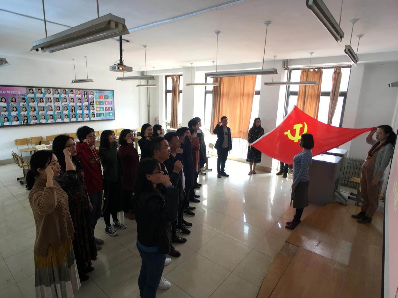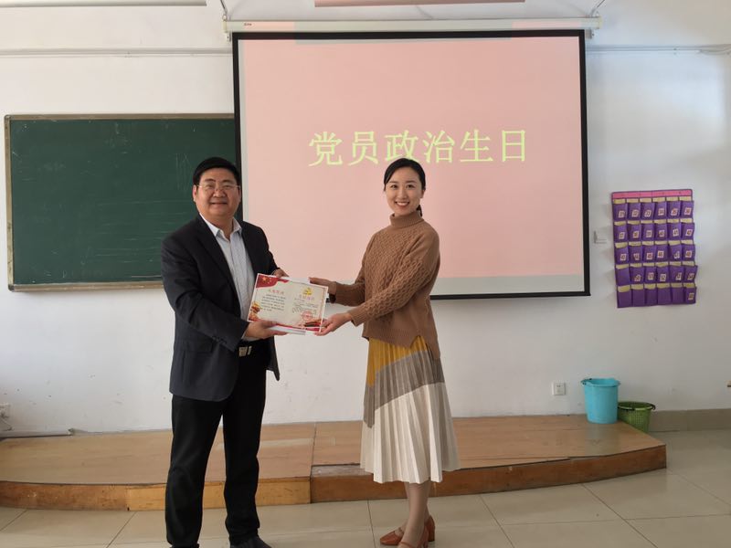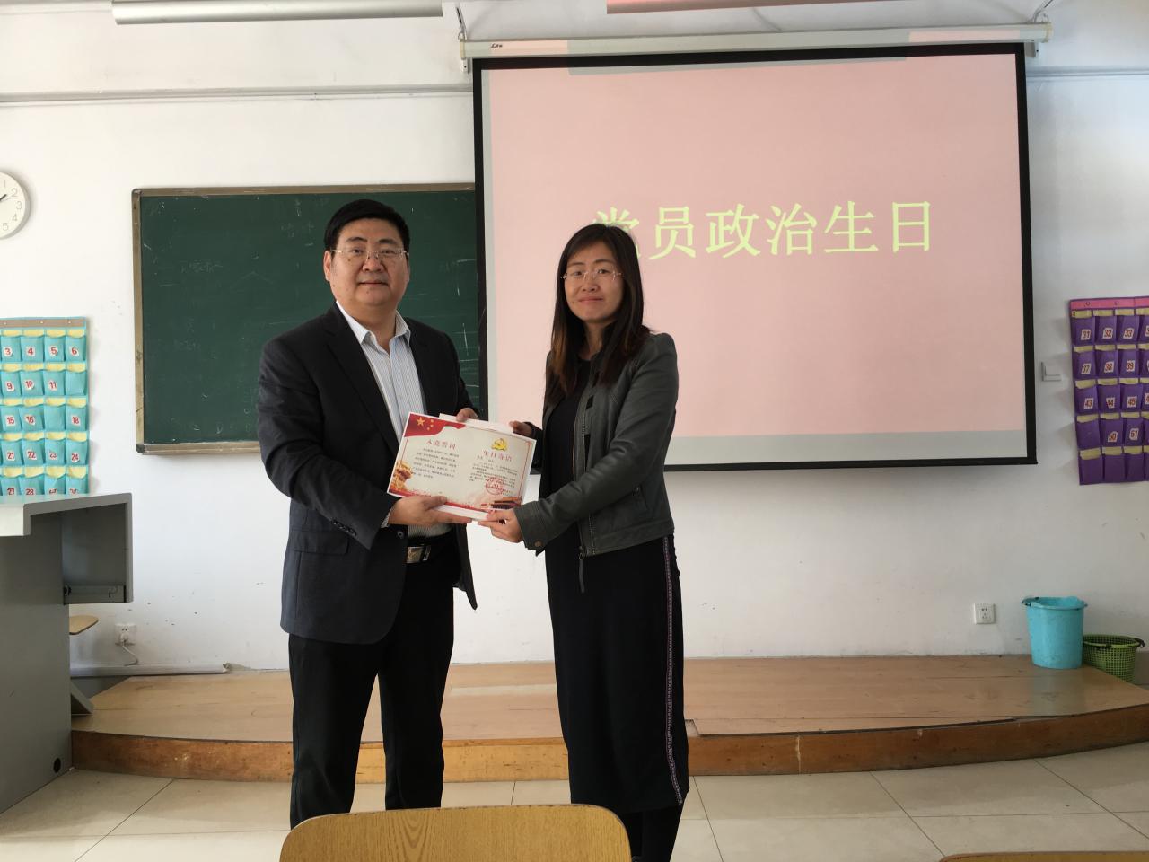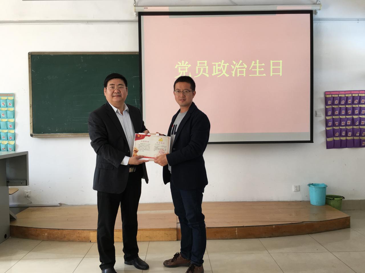 会议开始,在教工党支部组织委员张剑桥的领誓下,全体与会党员举起右手面向党旗重温了入党宣誓。接着启动党员“政治生日”活动,高成向三位在4月入党的教工党员赠送了政治生日贺卡和理论书籍,三位过“政治生日”的党员结合入党后的成长历程,回顾入党以来自身的成长与变化,表达了坚定做好工作的信心和决心。