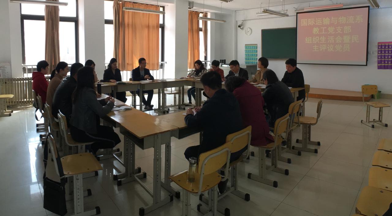 为深入学习贯彻习近平新时代中国特色社会主义思想和党的十九大精神,推动《中国共产党支部工作条例(试行)》落到实处,4月18日下午,国际运输与物流系教工党支部在B307室召开组织生活会。本次会议的主题是:以党建标杆系建设为契机,打造筑梦先锋品牌,提升基层党组织的组织力。学院党委委员、副院长高成,组织部部长韩淑君、副部长张云婧及全体教师党员参加了会议,会议由教工党支部书记刘希全主持。
