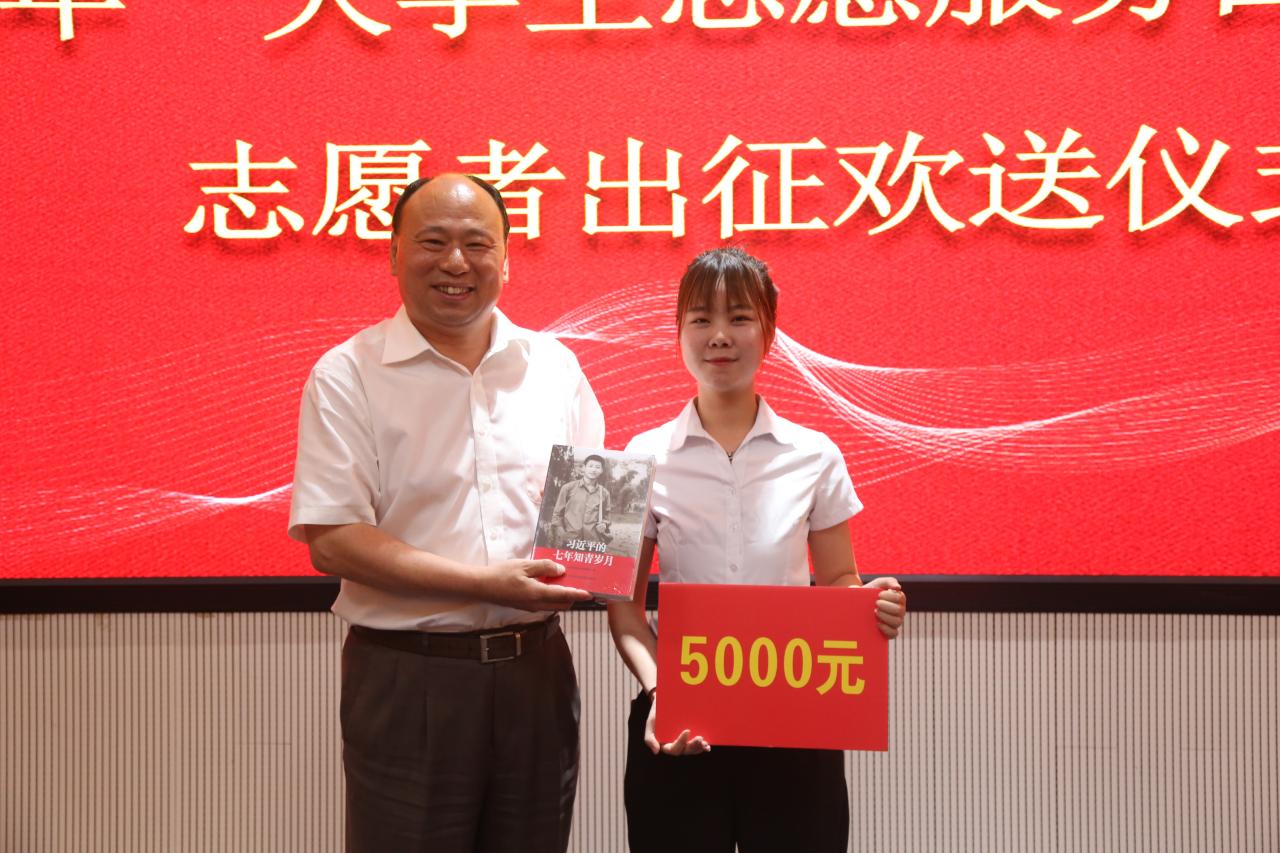 唐长臣在讲话中对王雨欣把个人前途和国家需要紧密结合给予了充分肯定,赞扬了她选择参加西部计划的责任担当和奉献精神。他指出,大学生志愿服务西部计划的实施为包括广大西部计划志愿者在内的各族青年施展才华、实现人生价值提供了广阔舞台,为支援西部建设贡献了青春力量;学院在今后要继续做好西部计划项目的传承,提升西部计划项目的质量和水平,将西部计划项目作为教育、引导学生承担社会责任的有效手段;继续加大西部计划项目实施的保障措施,学院团委及各系要做好后勤保障工作,加强与志愿者的密切联系,搭好平台,做好推广。最后,唐长臣对志愿者提出三点希望,一是坚定信念、放飞自己的梦想,把个人理想与祖国建设紧密结合起来,切实担负起新时代赋予的使命;二是不负韶华、努力学习,主动加强沟通交流,克服困难和压力,增长本领,更好的服务当地建设;三是开拓创新、不断学习提升自己,在基层服务中磨砺意志品质。