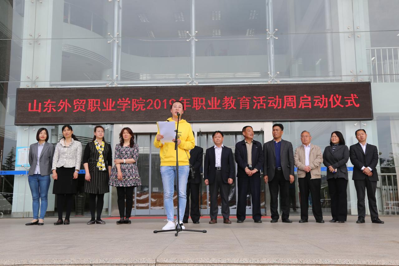 5月5日上午9时,伟德2019年职业教育活动周启动仪式在图书馆广场举行。学院副院长周厚才,伟德优秀校友代表、现青岛时代正德代理记账有限公司总经理刘玉洁,山东省教学名师、伟德国际贸易系系主任刘珉,各部门系部负责人,教师及学生代表参加了启动仪式。仪式由教务处副处长亓春霞主持。