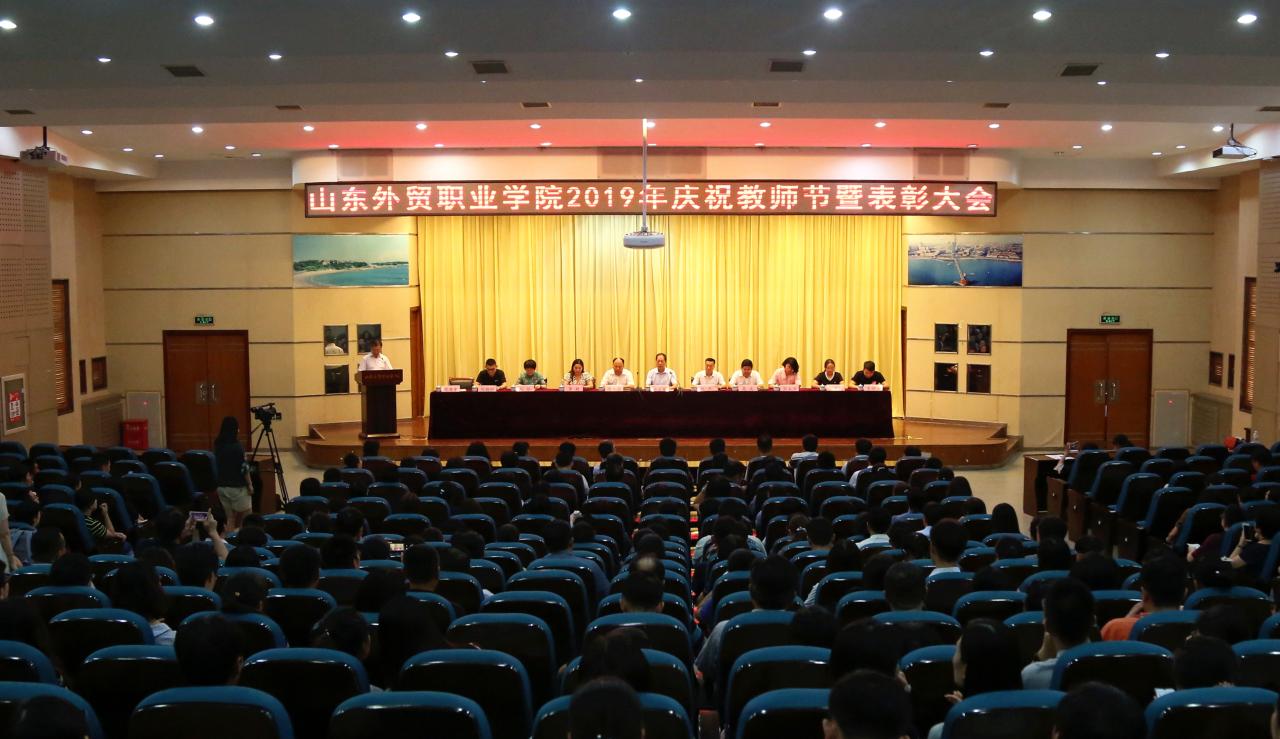 赵杰宣读了省商务厅党组给学院的第三十五个教师节的慰问信。唐长臣宣读了2018年度、2018-2019学年度有关表彰决定和获奖名单,出席大会的领导和来宾为获奖者颁奖。国际运输与物流系2017级物流管理2班孟肖童,优秀教师代表公共英语部刘晓兰,校友及合作单位代表99级青大国际贸易专业校友、青岛睫立美化妆品有限公司总经理李艳分别发言。