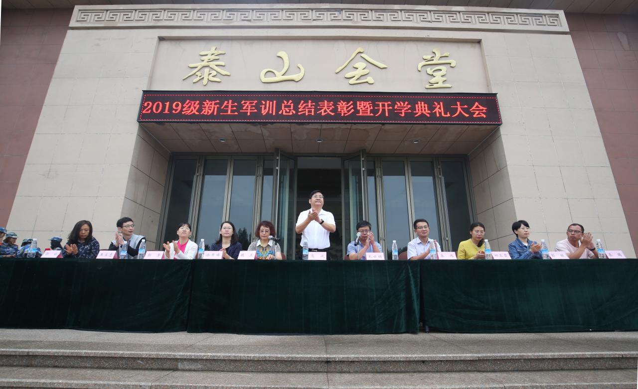 9月12日上午,泰安新校区2019级新生军训总结表彰暨开学典礼大会在泰山会堂前举行。副院长高成、学生工作处处长毛世明、承训教官及全体师生参加大会,大会由泰安新校区负责人魏玉主持。