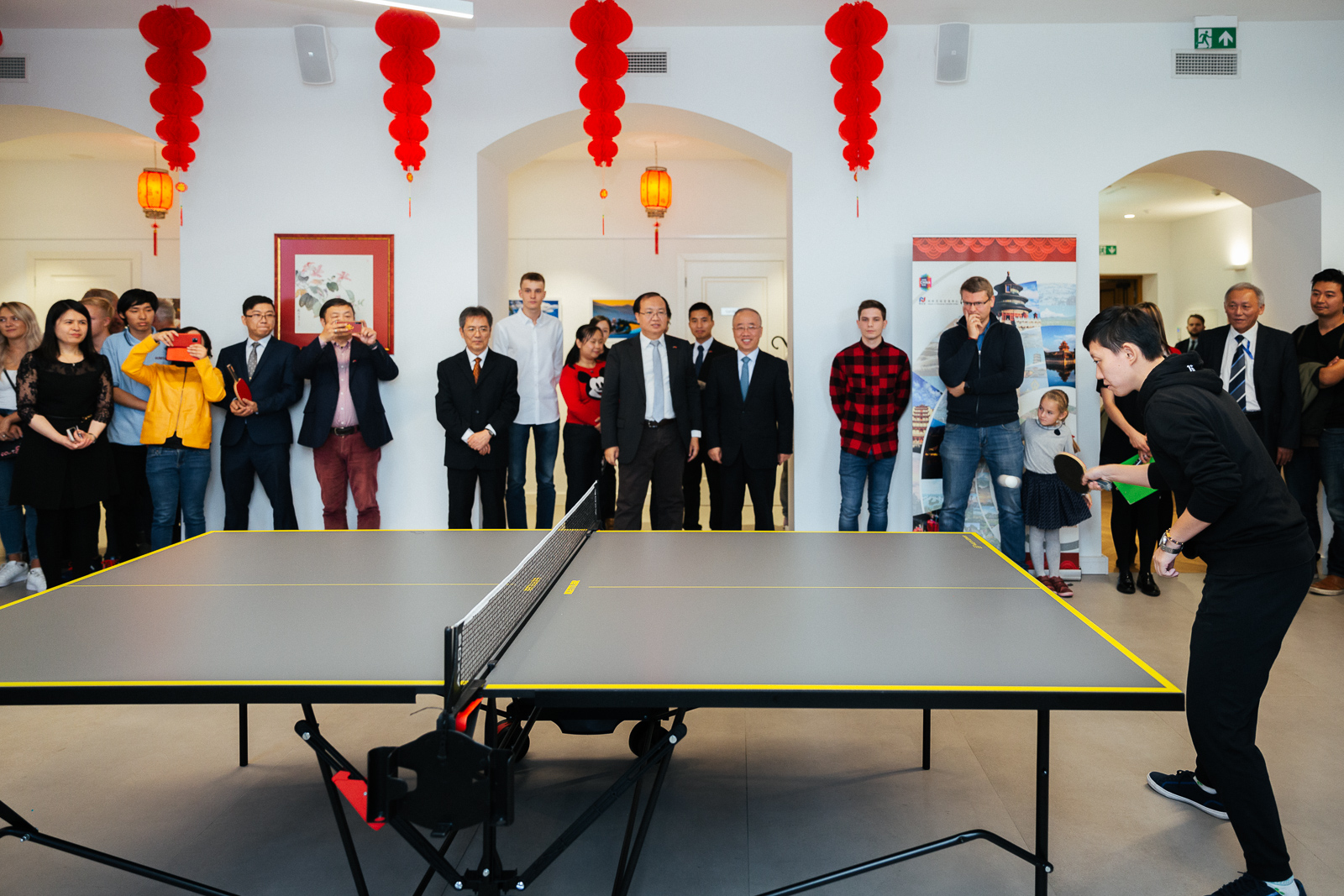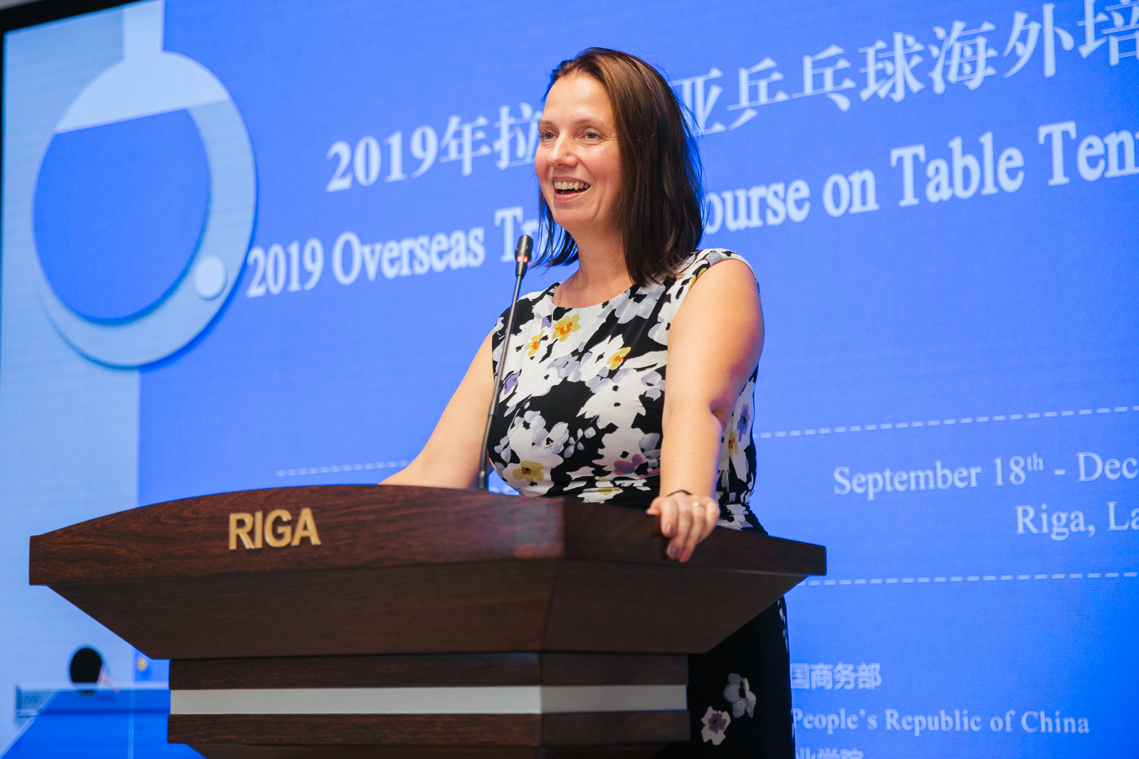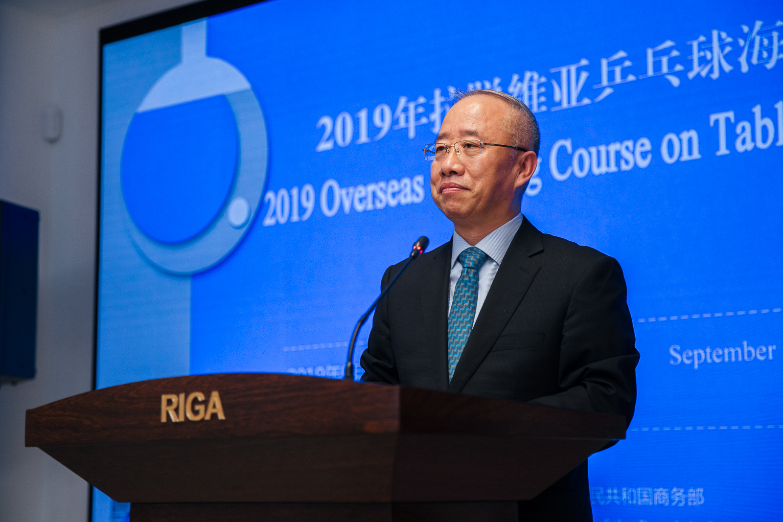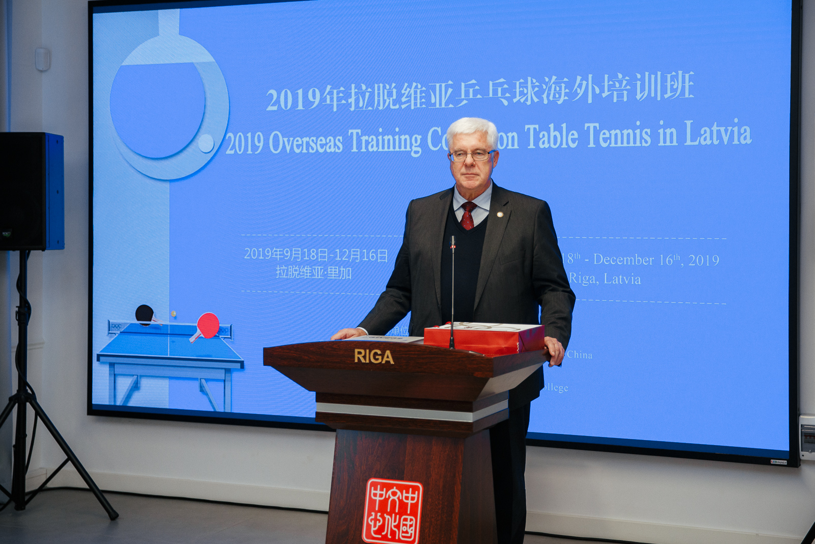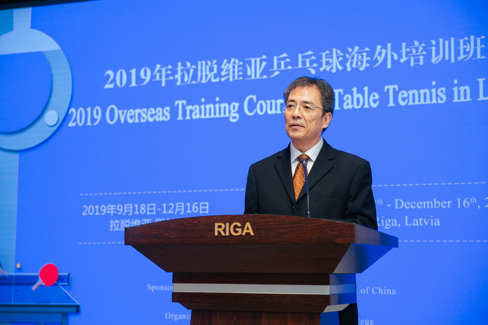 本次开班仪式是中国新任驻拉脱维亚大使梁建全出席的首场双边活动。他在致辞中表示,乒乓球是中国群众基础最为广泛的运动项目之一,中国的乒乓球爱好者约有8300万人,中国国家乒乓球队和运动员们在国际比赛中取得了优异的成绩,截至2019年5月,共有115人成为世界冠军。希望此次培训能进一步促进中拉体育文化交流,增强中拉友谊,提升拉脱维亚学员的水平,在未来各项赛事中取得更好成绩。