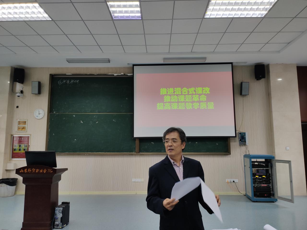 作为“不忘初心、牢记使命”主题教育系列活动之一,10月10日下午,周厚才副院长到公共英语部开展调研并参加混合式课改交流研讨会,研讨会在2号教学楼A2阶梯教室举行。本次调研及交流研讨会的主题为“推进混合式课改 推动课题革命 提高课题教学质量”,活动由公共英语部党总支书记兼主任崔卫主持,公共英语部全体教师参加。
