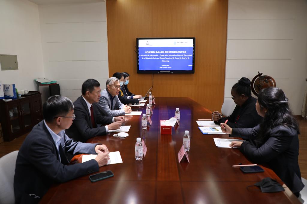 刁建东向莉迪亚一行的来访表示了欢迎,他简要介绍了学院的发展历程、人才培养和国际交流情况,指出多年来学院一直承担中国对多米尼加等加勒比国家的援助培训项目,希望与哈瓦那大学以“海外业务代表”培养模式开展深度合作,为促进中国——古巴经贸合作培养更多高素质技术技能人才。莉迪亚介绍了哈瓦那大学的办学历史,以及与上海、西安等中国高校的合作情况。通过会谈,双方在教师互访、教科研合作、学生留学等方面达成了初步共识。