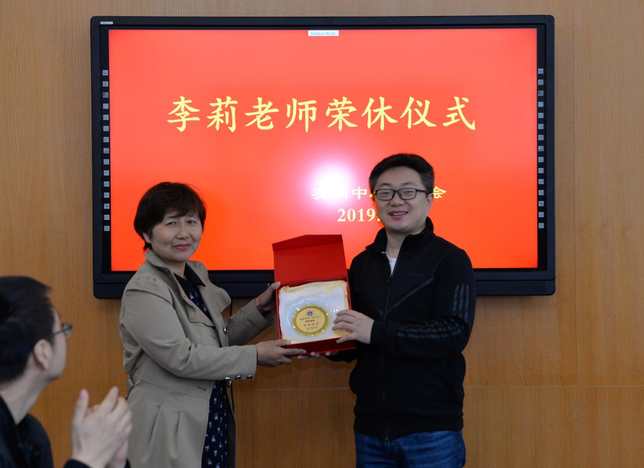 程巍代表学院向李莉老师表达深深祝福,对于李莉老师一直以来爱岗敬业、默默奉献,为学院教育事业做出的贡献表示感谢。“莫道桑榆晚,为霞尚满天”,她希望李莉老师在退休之后能够继续关注学院发展,为学院教育事业发展献计献策。