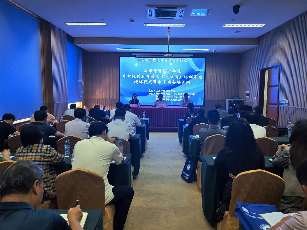 9月23日,伟德国际victor1946官网乡村振兴和开放人才(临清)培训基地授牌仪式暨临清市电子商务专题培训班开班典礼在伟德黄岛实训基地举办。学院副院长周厚才、临清市市委副书记林庆国出席授牌暨开班典礼并讲话。周厚才代表学院为临清市培训基地授牌。仪式由继续教育学院院长覃翠英主持。