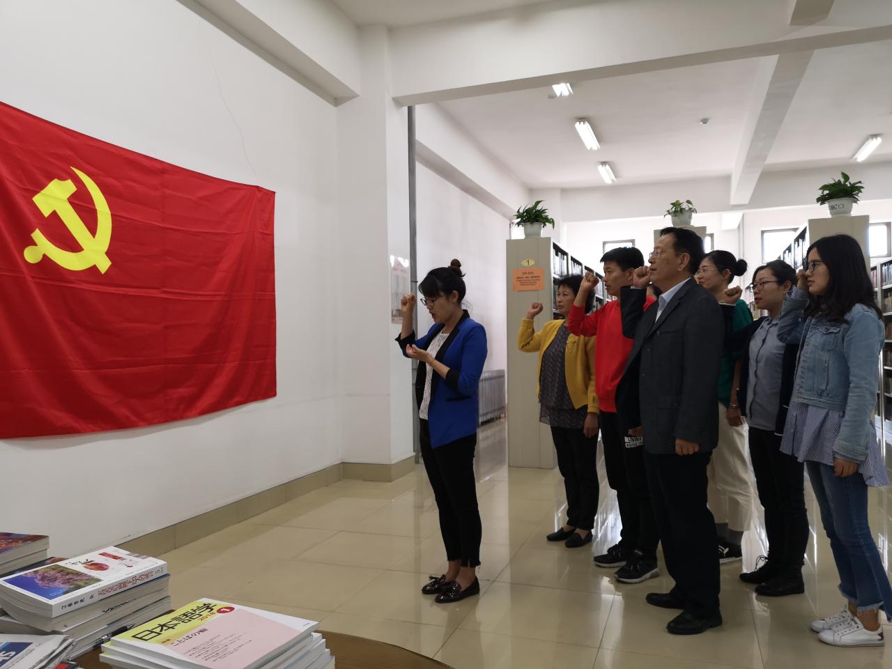 5月10日下午,图书馆党支部在图书馆外文书库举行主题党日活动——为党员过“政治生日”。图书馆党支部全体党员参加了此次活动,学院党委委员、副院长、机关党总支书记程巍参加本次活动,图书馆副馆长宋丽萍、流通部主任王颖列席了此次活动。