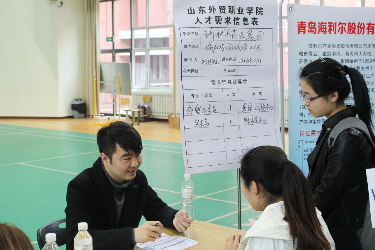 3月27日下午,省民营企业高质量发展服务队青岛二队支持企业专场招聘会在学院北校区文体中心举行。省民营企业高质量发展服务队青岛二队陈序境等一行六人带领青岛海利尔药业集团股份有限公司、青岛德盛机械制造有限公司等对接企业来院招聘,学院副院长高成和有关部门负责人、150余名2019届应届毕业生参会。学院就业指导部门还邀请了部分有招聘需求的企业共同参会。