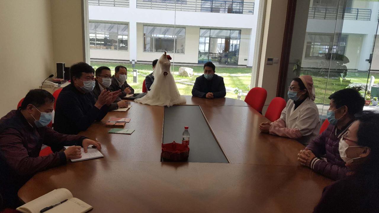 在华和美礼服公司,刁建东与企业经理,国际贸易部和生产部等相关业务部门负责人座谈,了解公司目前的生产经营情况、一季度 的出口情况,产品的出口通关方式和物流渠道等。座谈中,企业负责人谈到,目前公司采取的是个性化定制,按照一般贸易方式出口美国市场,中美贸易摩擦背景下缴纳25%的进口关税。针对这一问题,刁建东建议公司尝试以跨境电商B2C或B2B2C模式出口,降低企业经营成本,并提出近期安排学院跨境电子商务系教师与之对接,帮助企业尝试开展跨境电商业务。