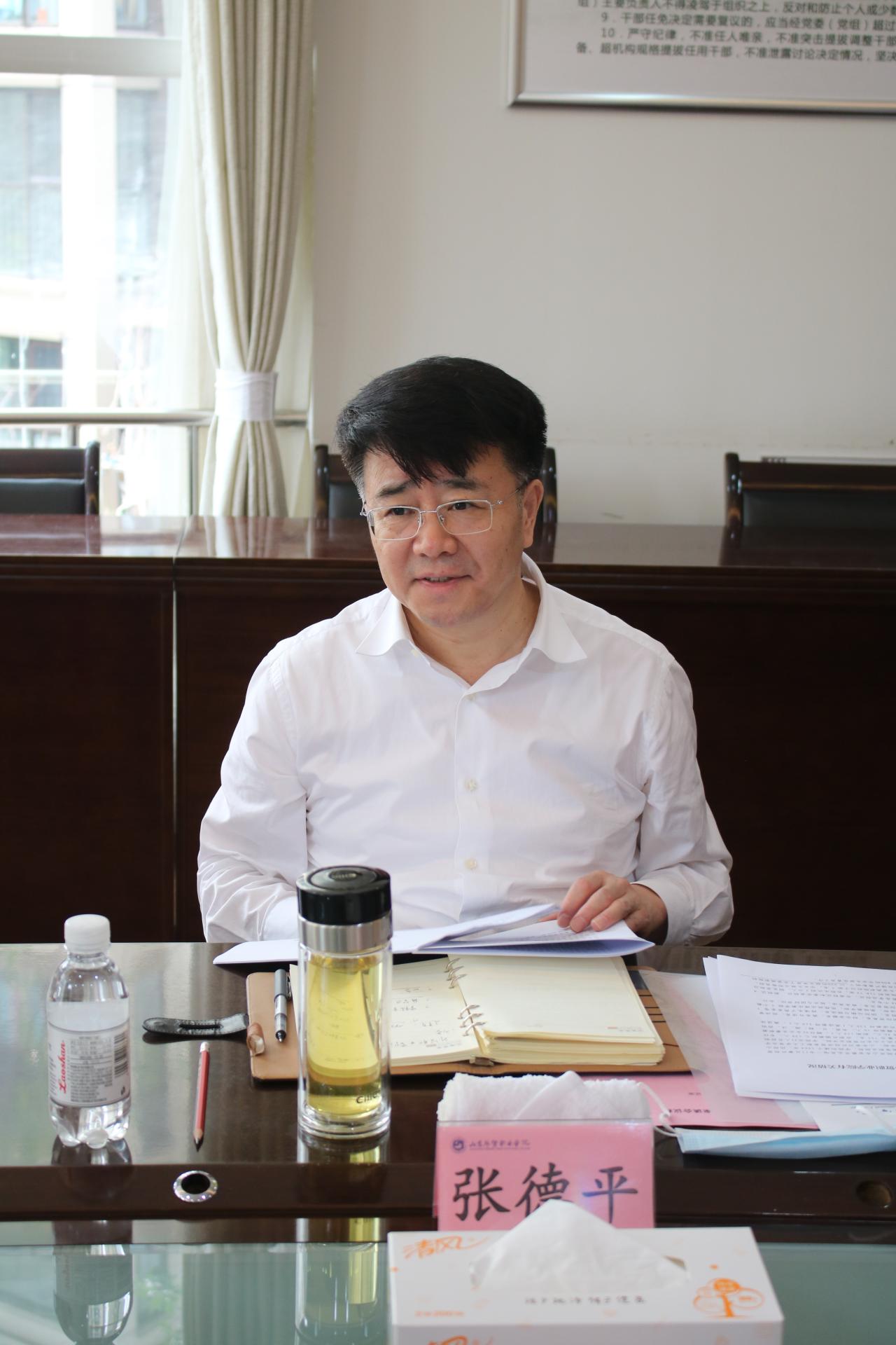 张德平充分肯定了学院近年来办学取得的成效,他指出,学院作为全省商务工作的重要组成部分,承担着为全省商务事业发展提供智力支持和人才支撑的职责,是全省商务事业发展的重要力量。他就学院发展提出五点要求:一要提高政治站位,全面加强党的领导。牢固树立“抓好党建是最大政绩”理念,落实党委全面从严治党主体责任,完善制度体系,抓好责任落实。强化意识形态领域管控,把加强思想政治工作作为学院工作的生命线。加强党风廉政建设,把纪律规矩挺在前面,做到集体决策、科学决策、公开透明,学院纪委要履行好监督责任;二要坚持立德树人,提高教育教学质量。坚持正确的政治方向,把“立德树人”贯穿到教育教学的全过程。坚持质量立校,深化教育教学改革,优化专业设置,打造优势学科,健全内部管理体制机制,推动教育教学提质升级。加强师德师风建设,努力提升教职员工的师德品行,担起学生健康成长指导者和引路人的责任。树立人人成才观念,因材施教,分层次、不拘一格培养德才兼备、全面发展的有用人才;三要突出涉外特色,推动产教融合校企合作。服务对外开放大局,立足“外经贸”院校主责主业,突出外向型、应用型、技能型特色,围绕全省对外开放工作重点,科学设置课程,加强实践锻炼,增强实操能力,争创山东特色高水平高职院校,为对外开放事业提供人才支撑。服务国家战略,结合“一带一路”、自贸试验区、上合示范区建设等重大国家战略部署开展相关领域的创新实践。加大产教融合、校企合作力度,积极参与国家职业教育产教融合试点,充分利用广大校友资源,设立实习实训基地、技术研发和推广服务中心。四要树立正确导向,加强干部队伍建设。落实好干部标准,着力在选好干部、优化结构、储备人才上下功夫,树立实践实干实绩的鲜明用人导向。团结和谐,切实增强班子的整体合力,拓宽视野、放大格局,做到目标同向、工作同心,营造风清气正、心齐劲足的良好氛围。培养年轻干部,对年轻干部做到选得准、用得好、管得严,使干部队伍形成合理的年龄梯次和专业结构。建设“双师型”教师队伍,以高水平“双师型”教师队伍建设为核心,以引进和培养高层次人才、专业领军人才和高水平教师教学创新团队为重点,落实人才招聘自主权,建立和完善促进人才快速成长的引才聚才用才育才体制机制,打造一支政治素质过硬、业务能力精湛、育人水平高超的高素质高水平“双师型”教师队伍;五要注重文化传承,积淀深厚底蕴。校园文化建设需要绵绵用力、久久为功。希望学院坚守“德能并举、知行合一”的校训,“不忘初心、牢记使命”,将学院打造成教职员工和学生们永远的精神家园。