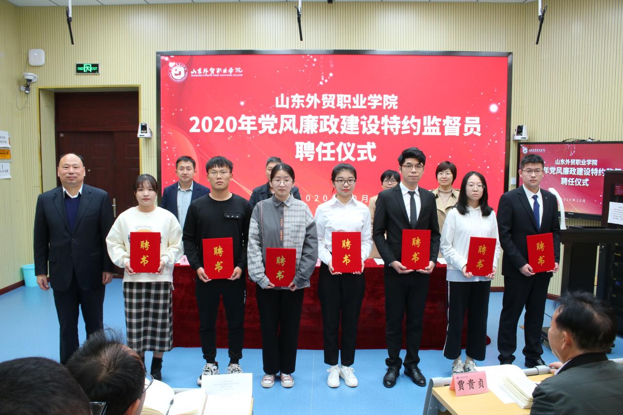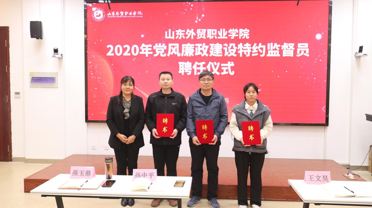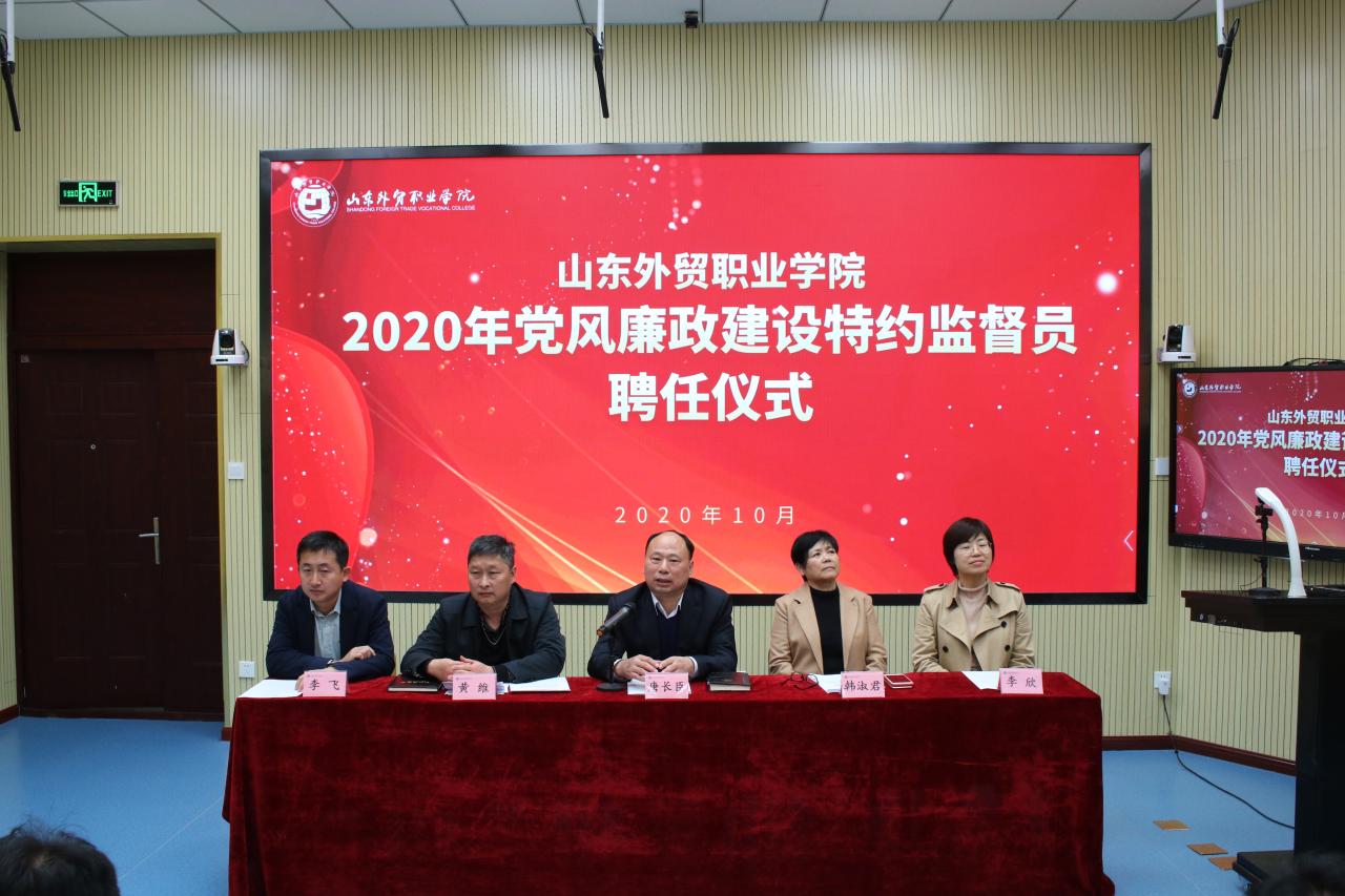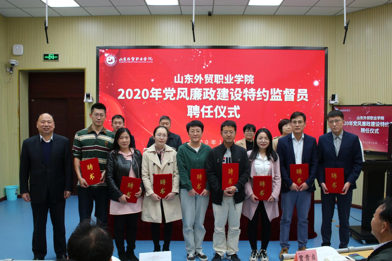仪式上,黄维同志宣读了学院党委印发的《伟德国际victor1946官网党风廉政建设特约监督员聘任与管理暂行办法》,学院纪委委员、组织人事处处长韩淑君同志宣读了2020年学院党风廉政建设特约监督员名单。唐长臣同志和泰安教学部纪委书记韦敏同志分别为青岛、泰安两校区的特约监督员颁发了聘书。