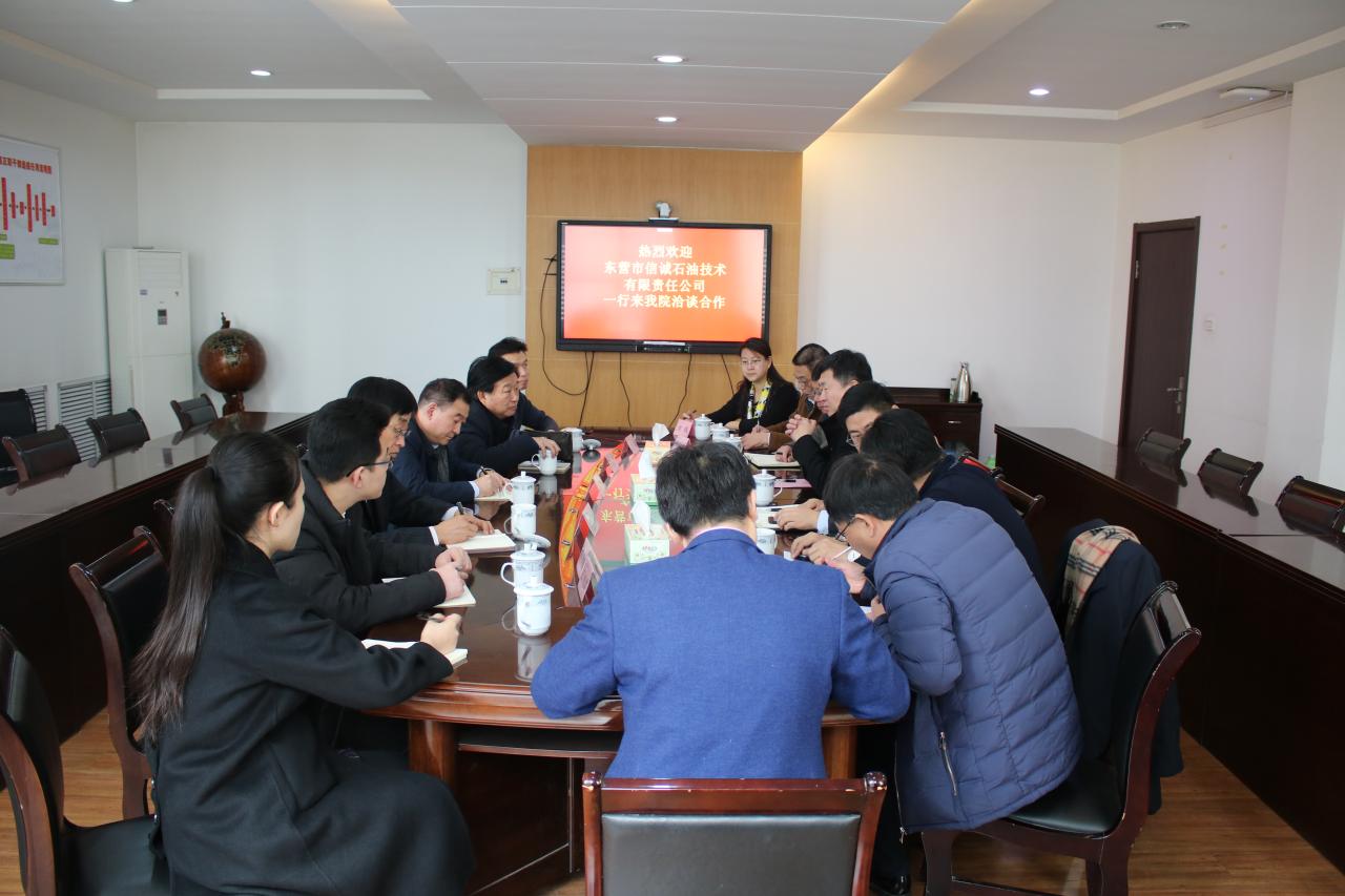 3月1日上午,学院与东营市信诚石油技术有限责任公司(以下简称“信诚公司”)校企合作洽谈会在学院第一会议室举行,信诚公司董事长连经军、总经理钟绵江、财务总监刘汝飞、国际贸易部、技术部、财务部等部门负责人,学院院长刁建东、副院长高成、学生工作处、招生办(校企合作办)、校友办、国际贸易系、信息管理系等部门负责人参加了洽谈。