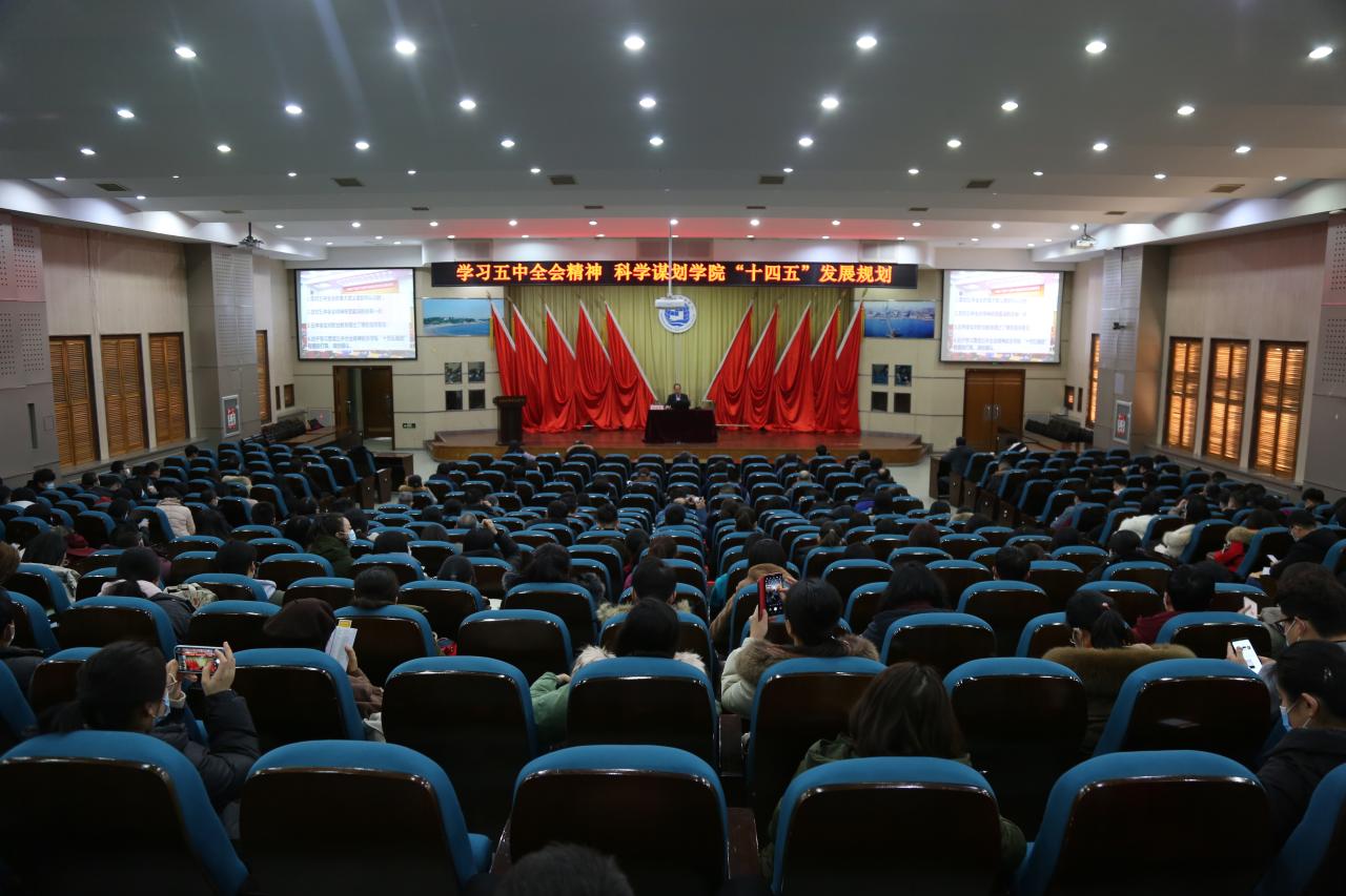1月11日,学院在学术报告厅召开学习贯彻党的十九届五中全会精神宣讲报告会,党委书记林凌家为全院党员干部作了题为《学习领会党的十九届五中全会精神 科学谋划学院“十四五”发展规划》的党课,学院全体党员参加了报告会。