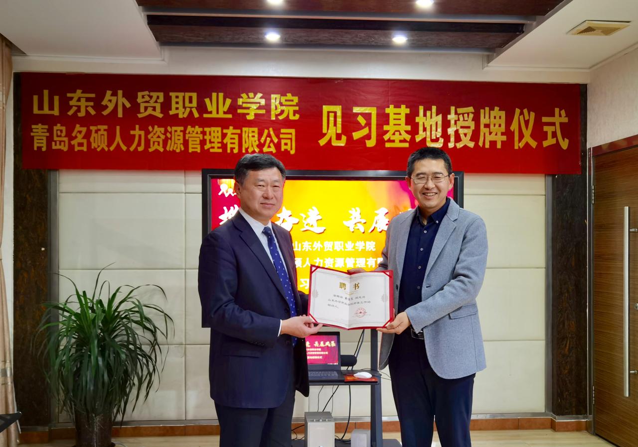 1月22日下午,伟德国际victor1946官网即墨教学实践基地挂牌仪式在青岛名硕人力资源有限公司举行。伟德院长刁建东、国际官员研修学院院长王保红,即墨区人社局、工商联、区人才交流中心、区农业农村局相关领导和企业代表出席挂牌仪式。