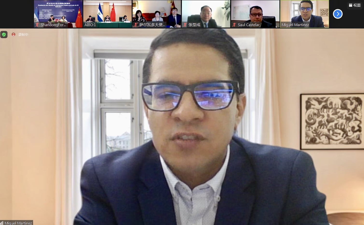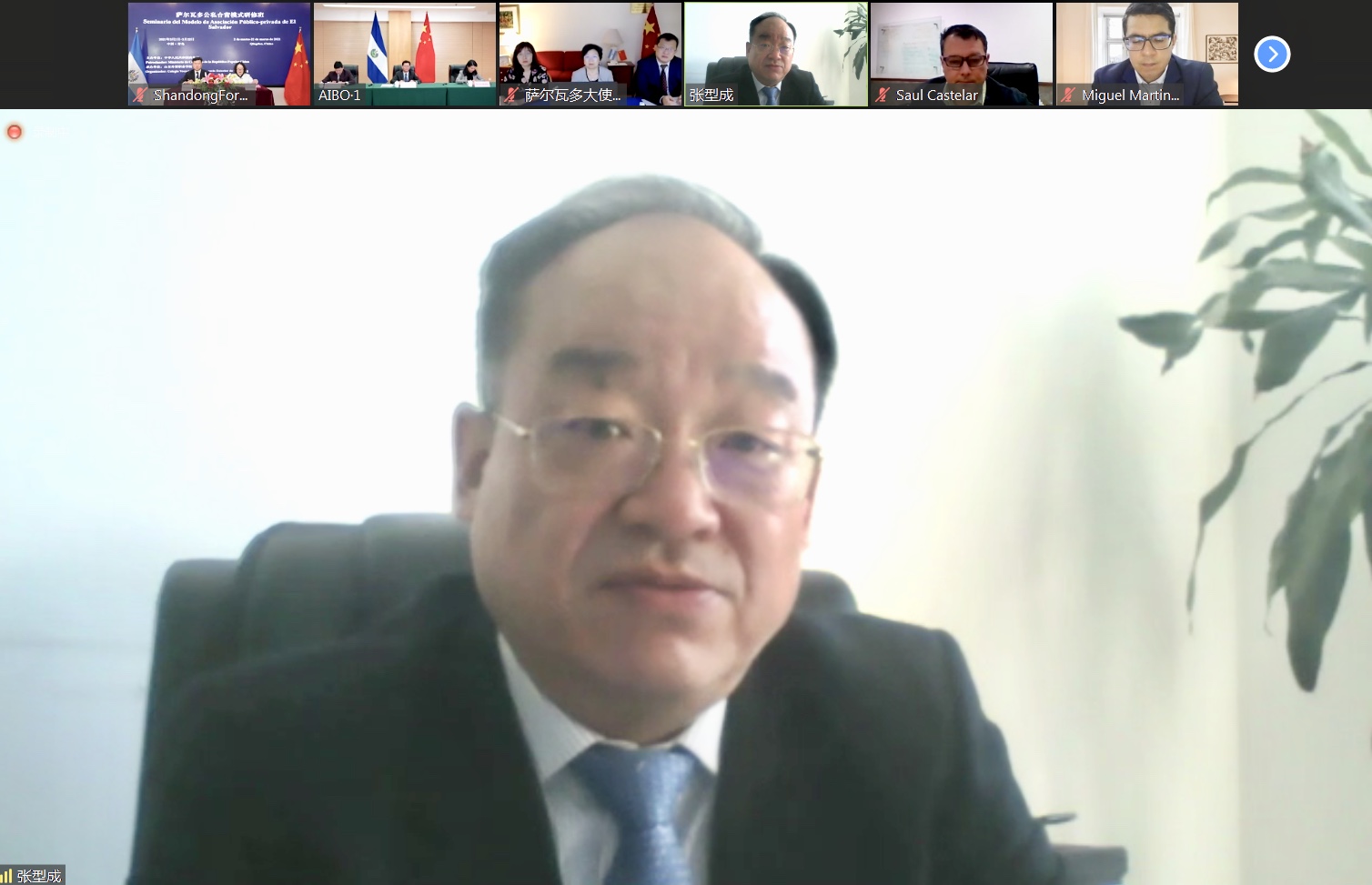 3月2日上午,伟德承办的“萨尔瓦多公私合营模式研修班”举行线上开班仪式,萨尔瓦多公共工程部副部长Saul·Castellar、中国驻萨尔瓦多大使馆欧箭虹、商务部国际商务官员研修学院副院长陈润云、山东省商务厅副厅长张型成、中国驻萨尔瓦多使馆商务参赞姚明、伟德院长刁建东共同出席线上开班仪式并致辞。来自厄瓜多尔公共工程部的Miguel·Rodriguez代表全体学员发言,开班仪式由伟德国际官员研修学院院长王保红主持。