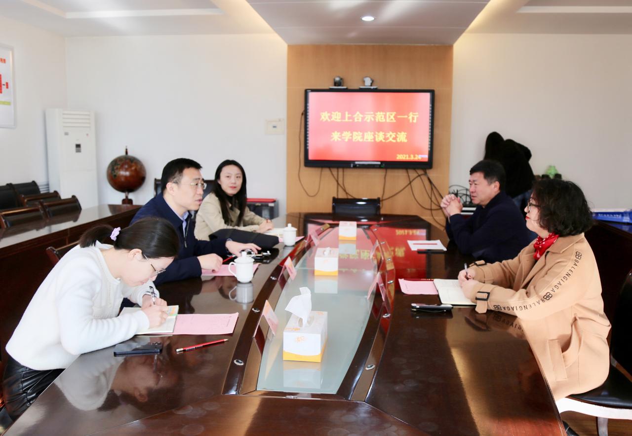 3月24日上午,上合示范区商旅文化部部长夏鹏、副部长冷岩冰等一行三人来学院座谈交流。院长刁建东、国际官员研究学院院长王保红参加座谈。