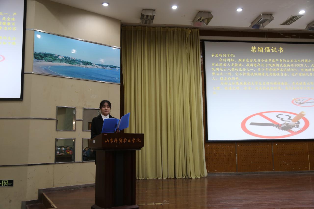启动仪式上,财会金融系19会计6班孙睿同学宣读校园禁烟倡议书,经济管理系20会展策划与管理王梦涵、20市场营销牟亦德讲解了大学生基本礼仪常识,国际贸易系礼仪队进行了礼仪展示活动。