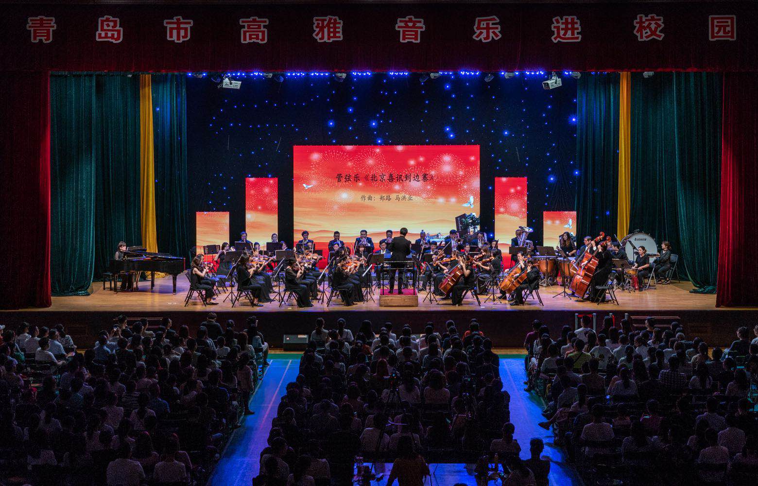 6月26日晚7时,2019年青岛市“高雅音乐进校园”——青岛市歌舞剧院交响乐团专场演出在伟德青岛北校区礼堂精彩上演。青岛市委宣传部文艺处副处长于颖,学院院长刁建东、纪委书记唐长臣以及1000多名师生共同聆听了音乐会。