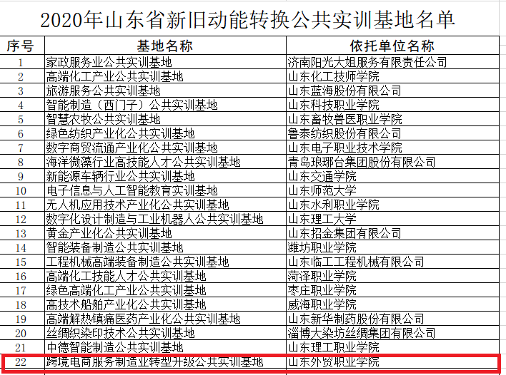 近日,山东省工业和信息化厅发布《2020年山东省新旧动能转换公共实训基地名单公示》通知,伟德申报的跨境电商服务制造业转型升级公共实训基地成功入选。