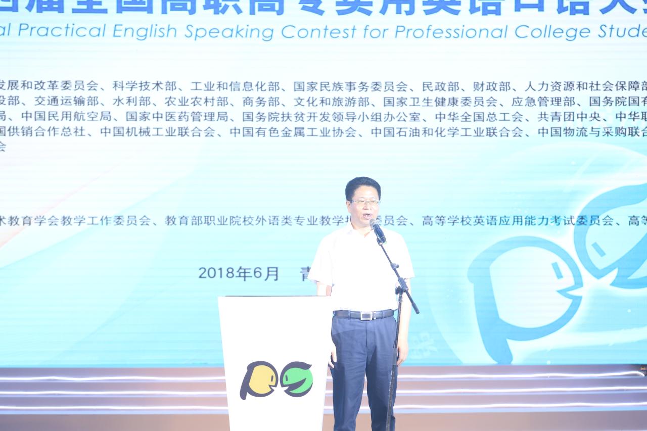 决赛开幕式上,教育部职业院校外语类专业教学指导委员会主任、院长刁建东,中国职教学会院校技能竞赛工作委员会副主任、高等教育出版社副总编辑查卫平,山东省教育厅职业教育处调研员吕序峰分别致辞;大赛裁判长、北京理工大学珠海学院外国语学院院长吴树敬代表全体裁判宣誓;全国职业院校技能大赛执行委员会办公室主任白汉刚宣布开赛。山东省商务厅驻青岛业务联络办公室主任陈序境、青岛市教育局职业教育处处长李一鸥等作为嘉宾出席开幕式。