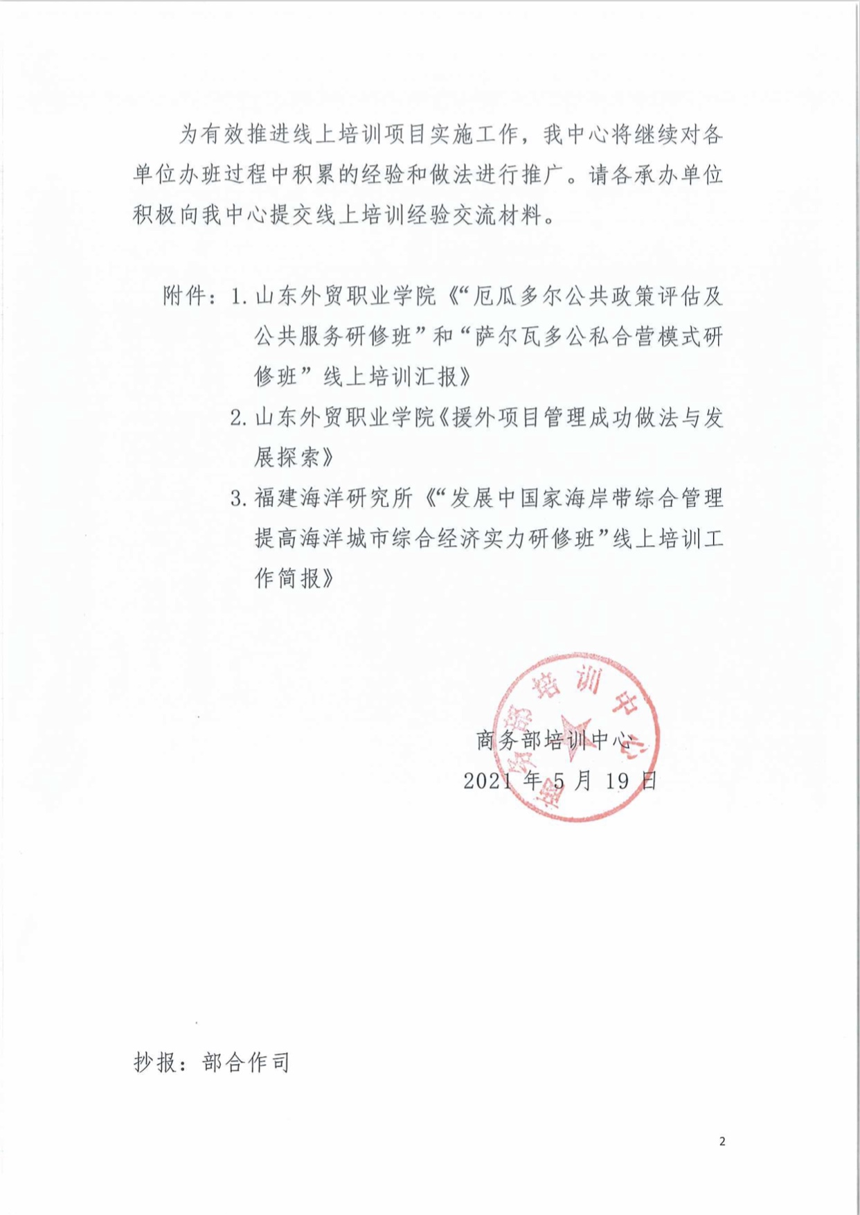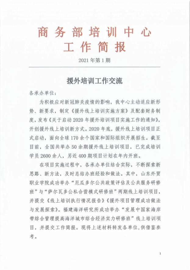 近日,伟德提交的《援外项目管理成功做法与发展探索》、《线上培训执行情况报告》被商务部培训中心在全国一百多家承办单位中推广。
