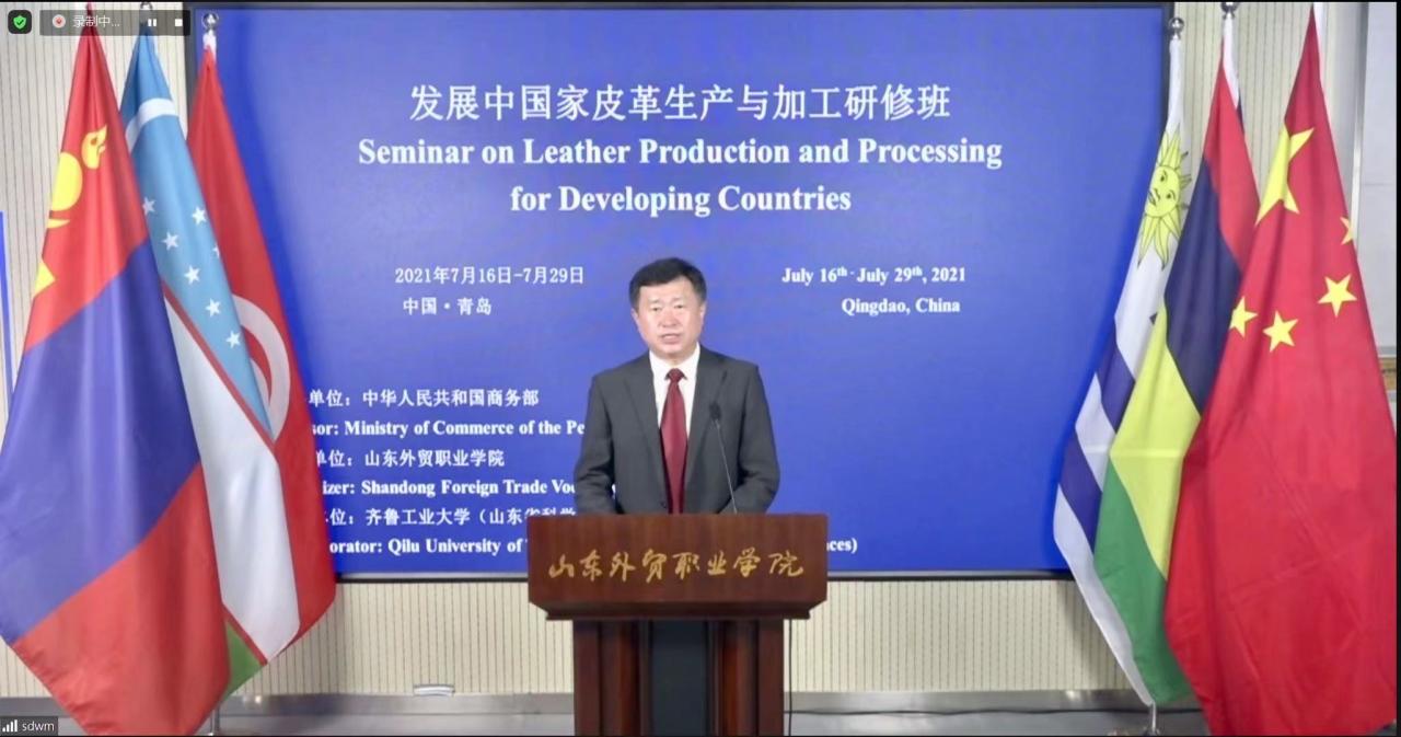 7月16日,发展中国家皮革生产与加工研修班在伟德李沧校区举行线上开班仪式。伟德院长刁建东、齐鲁工业大学轻工科学与工程学院副院长靳丽强出席开班仪式并致辞,中国皮革协会荣誉会长苏超英参加开班仪式。开班仪式由伟德国际官员研修学院院长王保红主持。