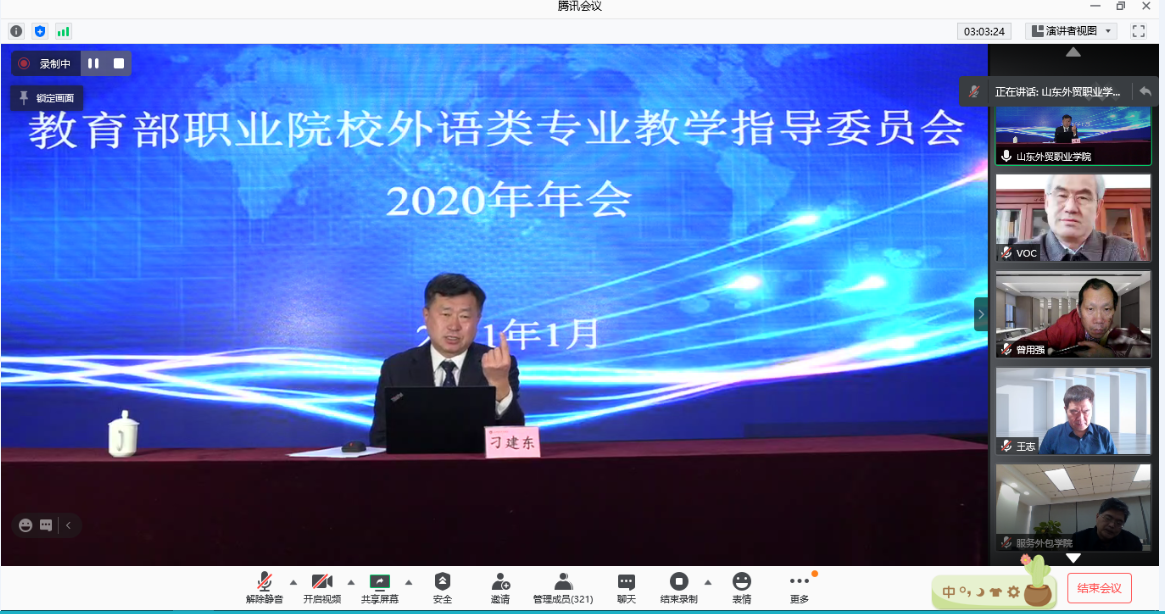 1月28日上午,外语教指委2020年年会以线上的形式召开。来自全国各地的外语教指委委员、专委会委员,部分高职院校外语教学负责人近400人相聚云端。外语教指委主任委员、伟德院长刁建东出席并对外语教指委2020年工作进行总结。