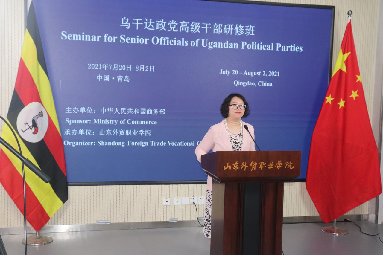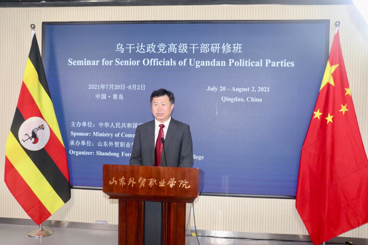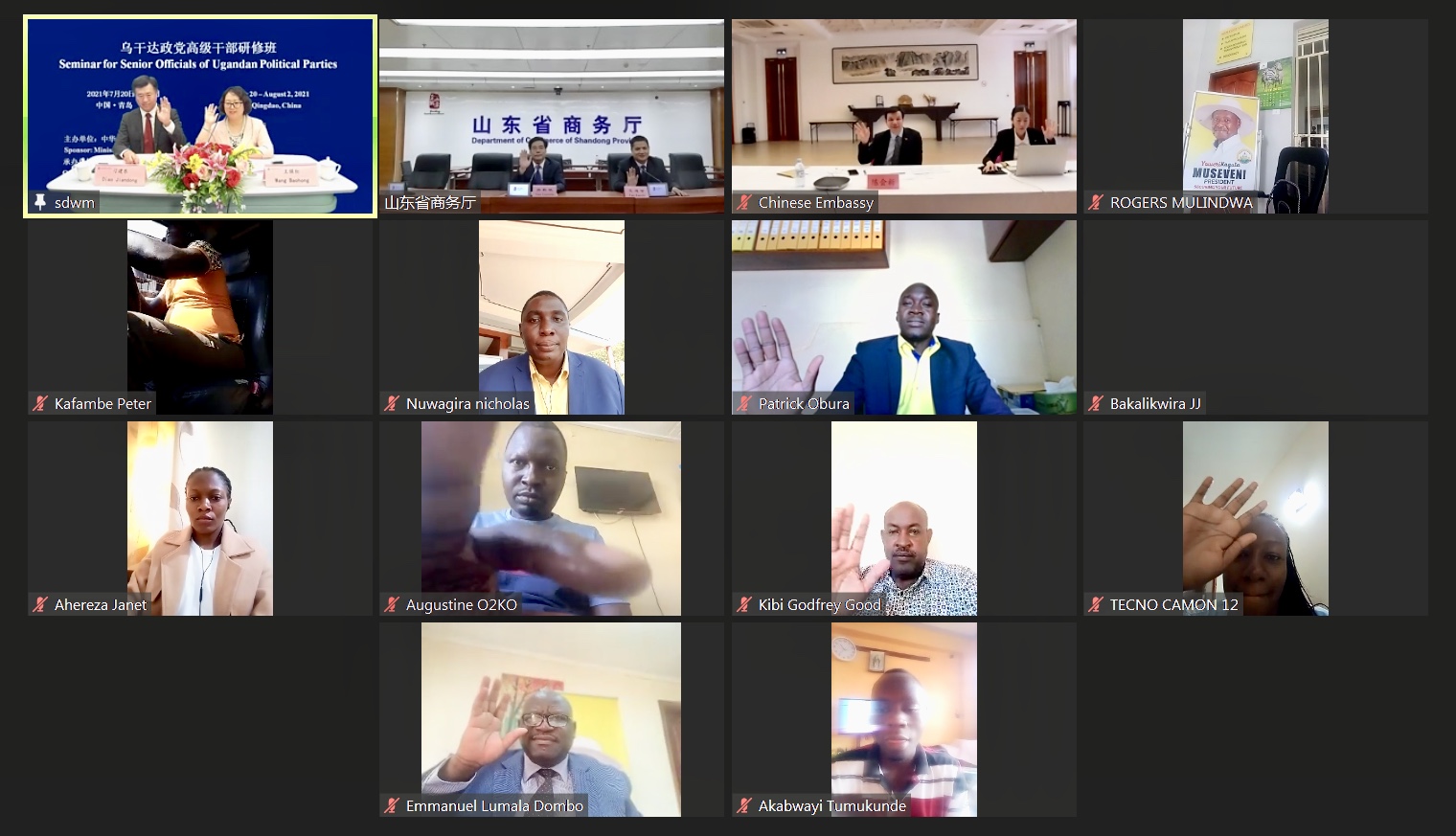 7月20日下午,由伟德承办的“乌干达政党高级干部研修班”举行线上开班仪式,中国驻乌干达使馆参赞陈会新、乌干达全国抵抗运动党新闻与公关处主任Hon.Dombo Emmanuel Lumala、山东省商务厅总会计师孙敢敏、伟德院长刁建东共同出席线上开班仪式并致辞。乌干达全国抵抗运动党秘书处研究员Augustine Otuko代表全体学员发言,开班仪式由伟德国际官员研修学院院长王保红主持。