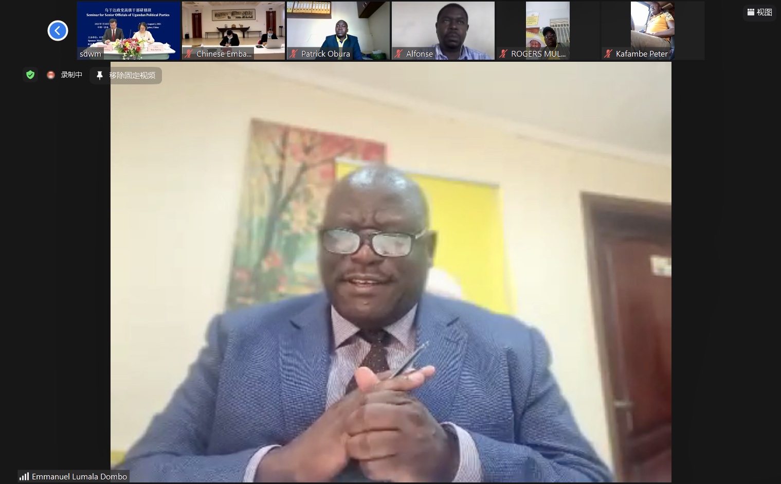 Hon.Dombo Emmanuel Lumala表示,祝贺中国共产党和中国人民在建党一百周年之际取得如此瞩目的成就,中国共产党一直是乌干达全国抵抗运动党的灵感来源,是发展中国家值得参考的范本。