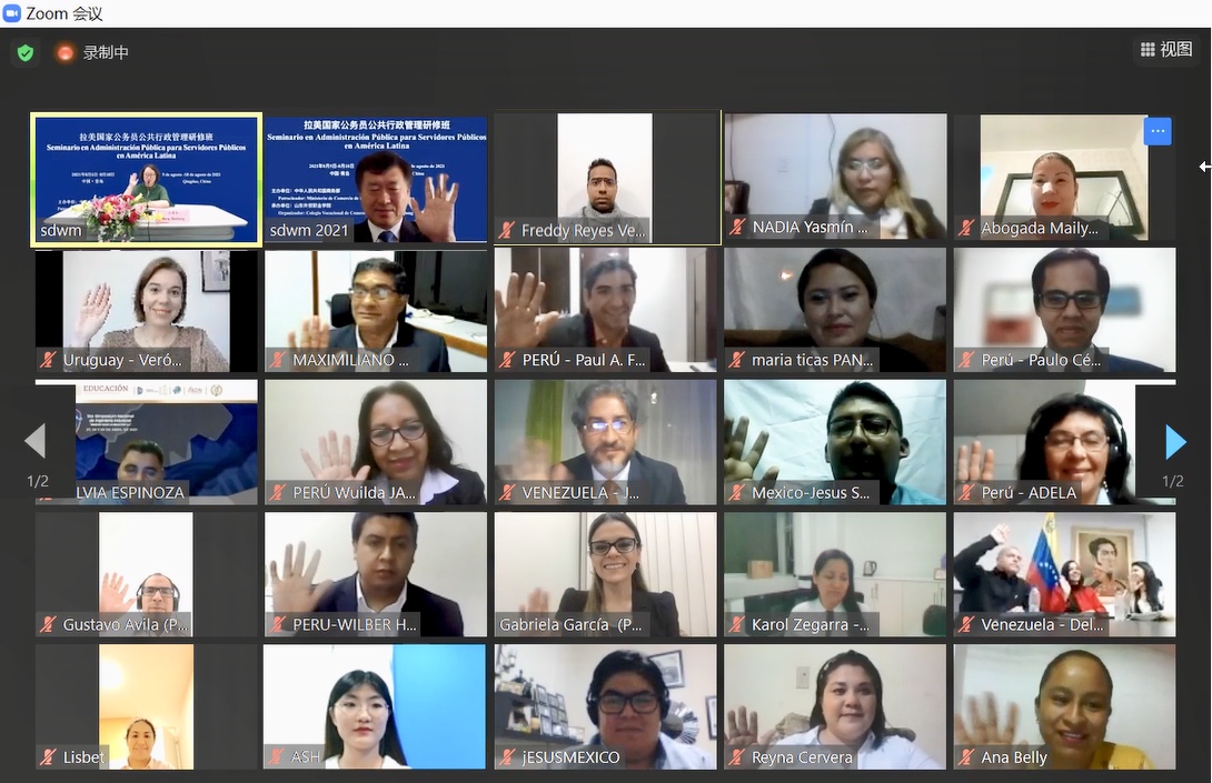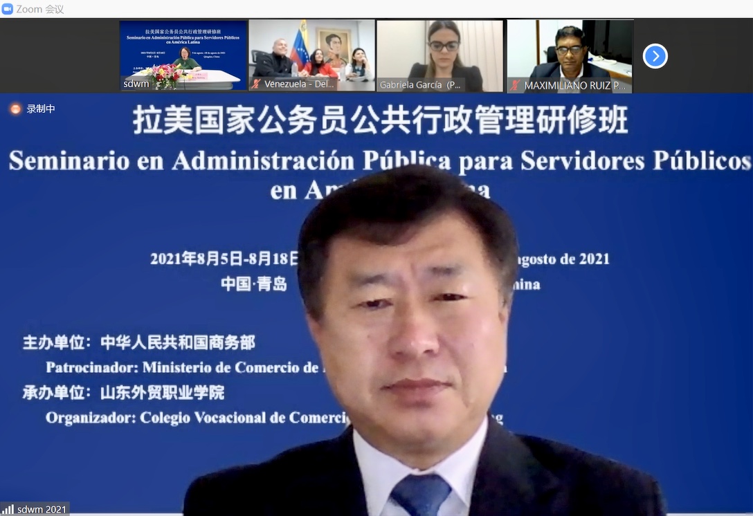 8月5日,拉美国家公务员公共行政管理研修班在伟德李沧校区举行线上开班仪式。伟德院长刁建东出席开班仪式并致辞,委内瑞拉总统府和政府管理监督部部长办公室主任玛丽亚·德尔加多和秘鲁交通运输部统计处主任加芙列拉·加西亚代表学员发言。开班仪式由伟德国际官员研修学院院长王保红主持。