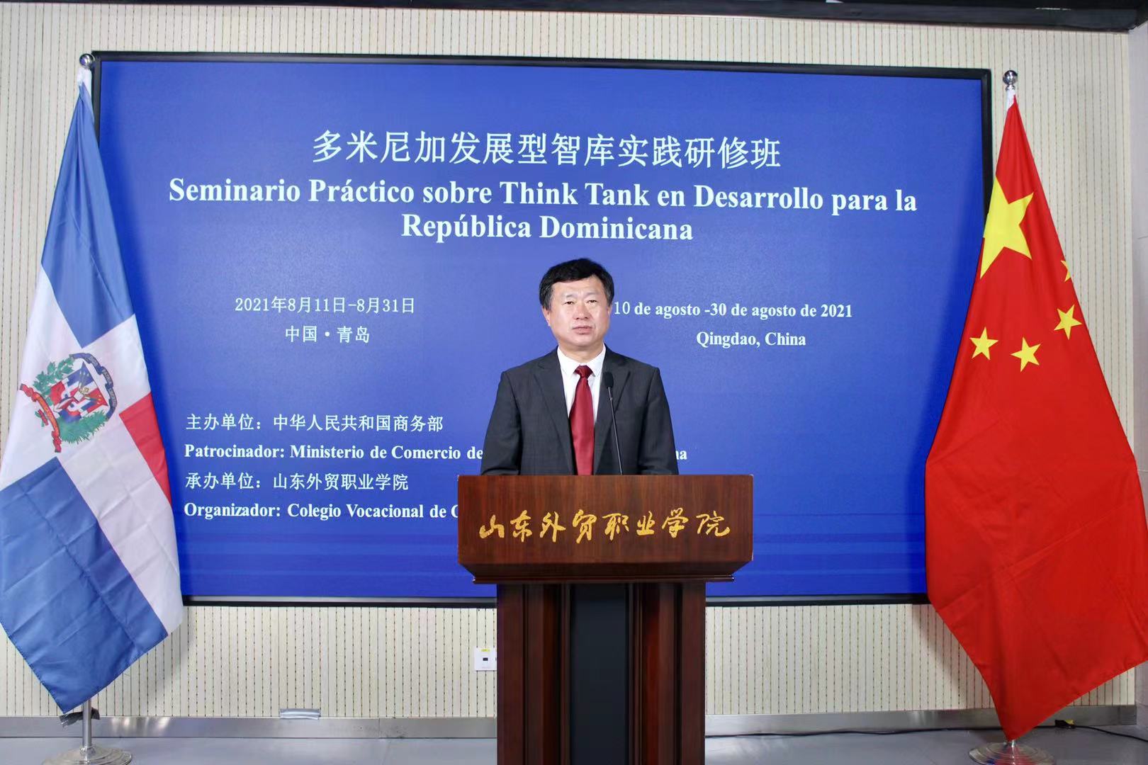 刁建东在致辞中简要介绍了山东省的基本情况,对学院的办学历史、校友企业、援外培训、与多米尼加的教育合作以及本期研修班的培训安排等进行了介绍。他表示,学院将充分利用各种平台和资源,为山东与多米尼加开展教育、经贸、智库建设等多领域合作提供服务、为促进山东企业在多米尼加的投资发挥作用。