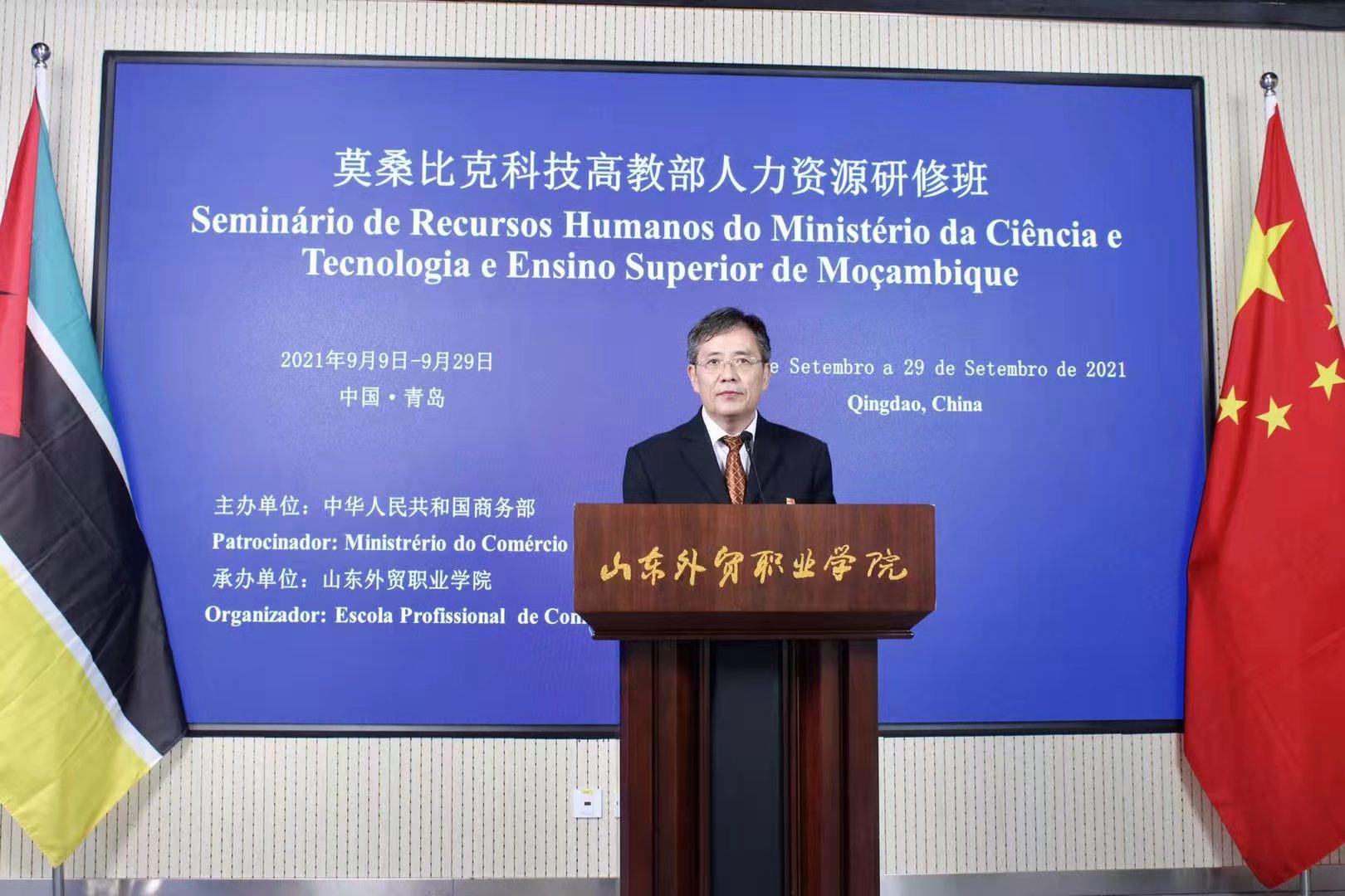 周厚才在致辞中简要介绍了山东省的基本情况,并对学院的办学历史、校友企业、援外培训以及本期研修班的培训安排等进行了介绍。他表示,学院将充分利用各种平台和资源,为山东与莫桑比克开展教育、经贸等多领域合作牵线搭桥。