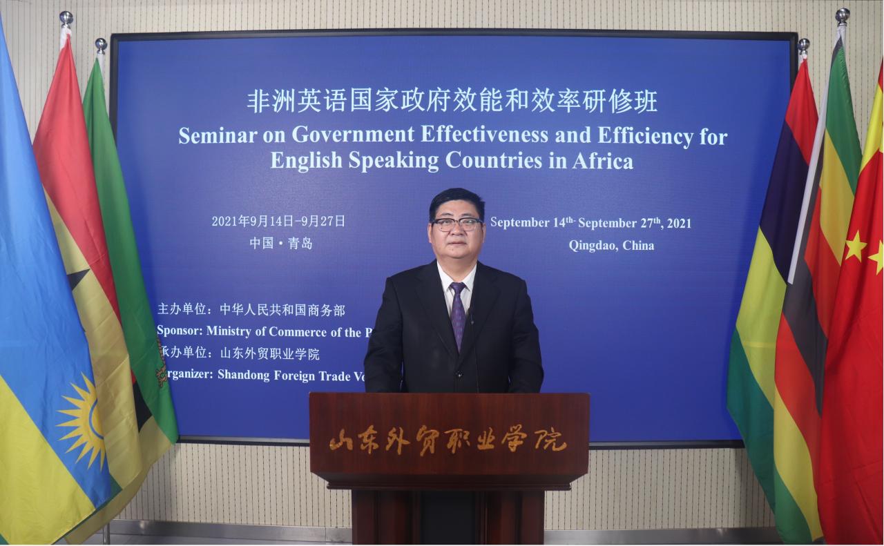 高成在致辞中介绍了山东省和青岛市的基本情况、学院的办学历史、援外培训经验、本期研修班的安排等。他表示,提升政府效能和效率是推进国家治理体系和治理能力现代化的重要内容。学院将充分利用国内科研院所、高校等师资和平台资源,分享中国提升政府效能和效率的经验,同时也为我省与非洲国家开展教育、经贸等多领域合作搭建平台。