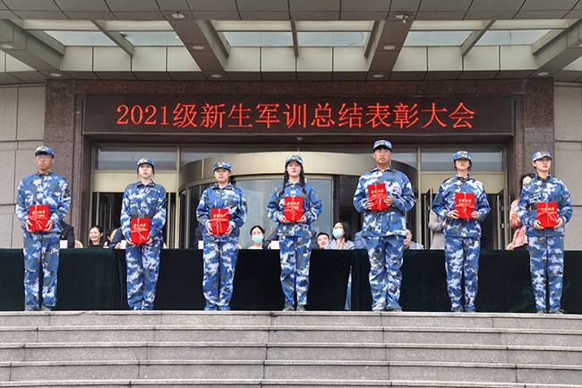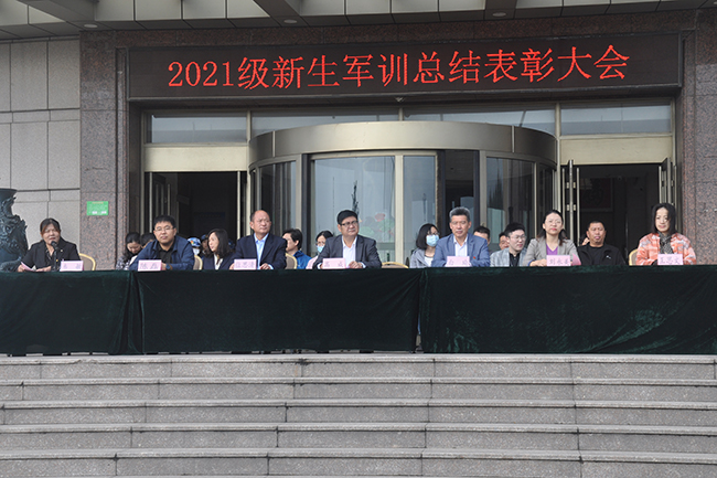 高成做总结讲话。他向顺利完成军训的2021级新生表示热烈祝贺,对同学们在道德修养、知识学习、安全行为规范等方面提出要求,希望同学们领悟校训真谛,增长才干,不负伟大时代。