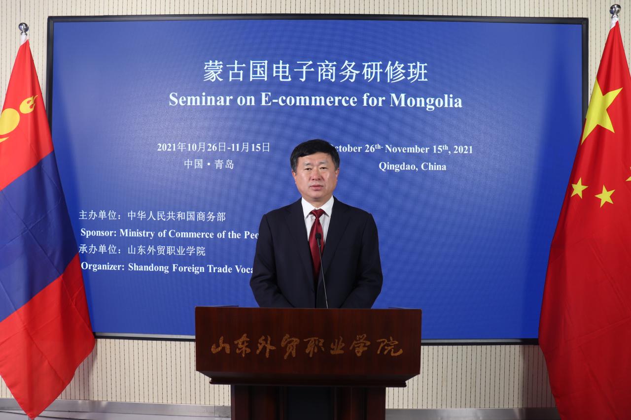 刁建东在致辞中介绍了学院的办学历史、援外培训情况及本期研修班的安排,重点介绍了伟德在电子商务领域取得的成就。他表示蒙古作为中国的友好邻邦,对于同中国开展电子商务合作有得天独厚的地缘优势,他希望本次研修班能够为中蒙两国电子商务合作搭建新的桥梁。