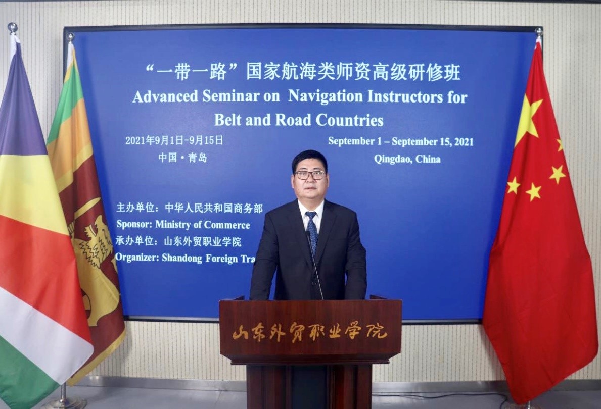 高成在致辞中介绍了学院的发展历程、援外培训、校友企业等情况。他表示,在培训班举办期间,学院愿搭建起中国与斯里兰卡、塞舌尔合作交流的平台,为山东省与斯里兰卡、塞舌尔开展航海师资合作交流和经贸合作发挥积极的促进作用。