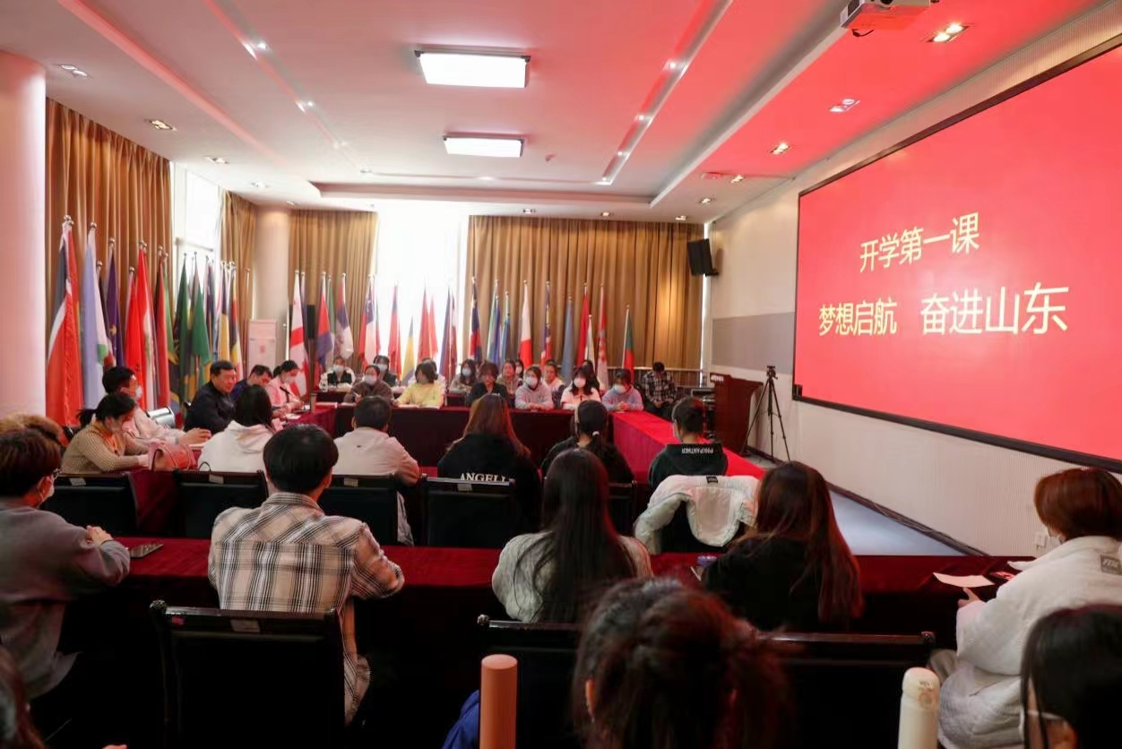 院长刁建东以“梦想启航 奋进山东”为题,从“学业与职业发展”和“养成积极健康的生活方式”两方面展开,带领跨境电子商务系22跨电3班学生思考如何在大学期间做好学业规划、生活规划和职业规划,并针对学生代表提出的在学习生活中遇到的困难和问题作详细解答。他希望同学们在新学期里要合理规划学习与生活,做到善学、勤思、笃行,不断提升思想道德修养和专业技能水平,激发青年人应有的创新热情和创造活力。